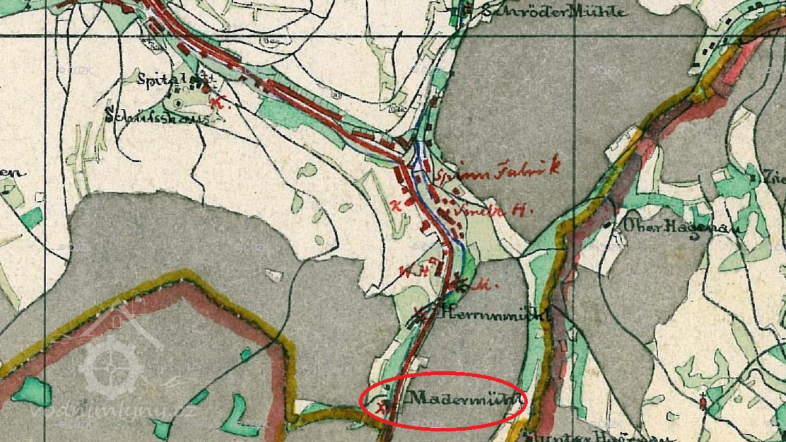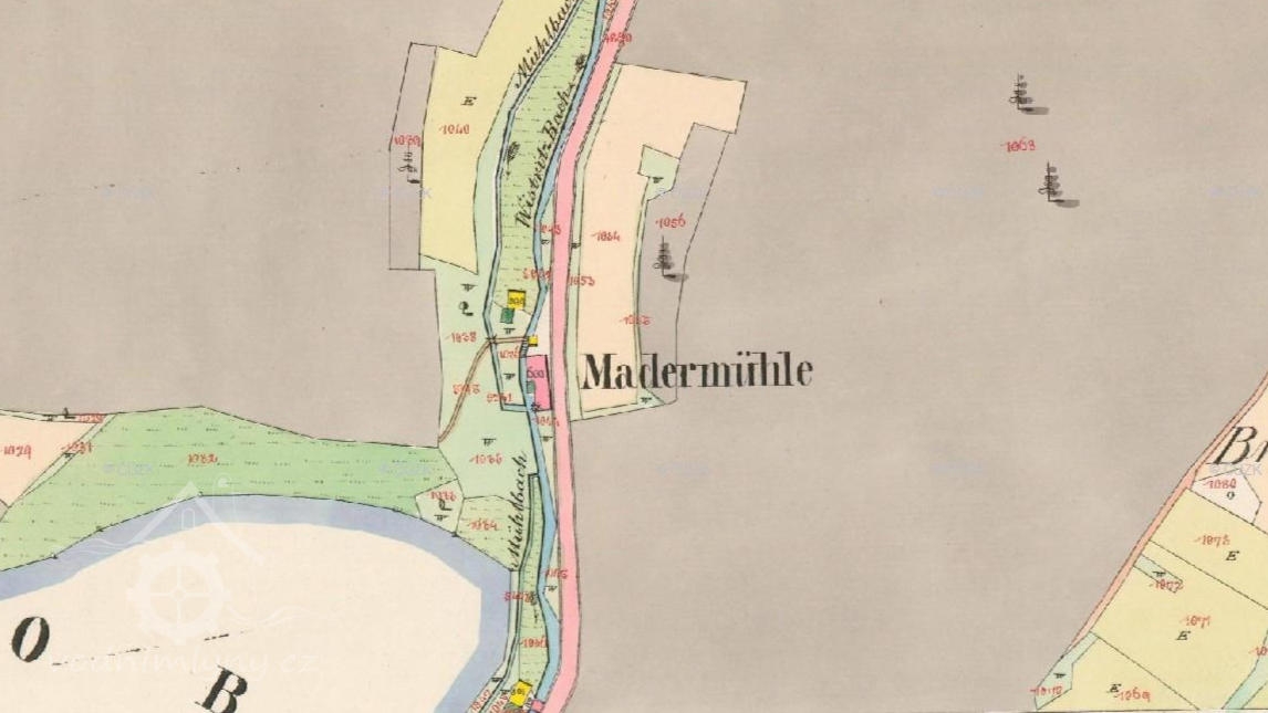 Privilegiem Maderova mlýna bylo vaření piva. Stal se tehdejším jediným mlýnem v okolí, který měl vantroky přes potok. Roku 1930 byl vyřazen z katastru nemovitostí a zbořen. Z původního mlýna prakticky nic nezbylo. Dochovala se pouze část náhonu, kterou můžeme najít u čističky odpadních vod. Tyčil se nad vilkou u silnice.