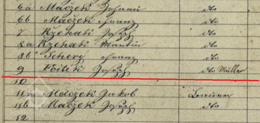 V roce 1828 mlýn vlastní mlynář Jozepf Foitík.