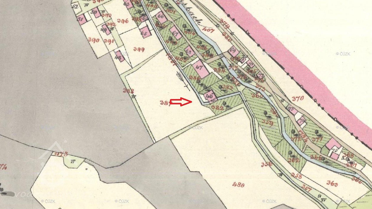 Na nejstarším leteckém snímku této oblasti z roku 1952 již není. Kousek na východ od něj stojí nová budova.
