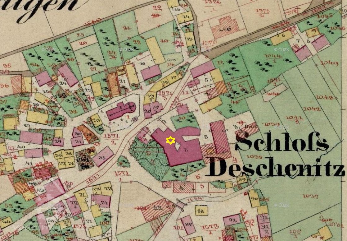 50 m jv od kostela sv. Mikuláše v Dešenicích