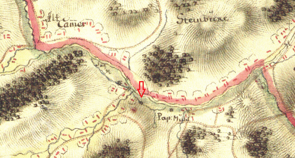 Mlýn je zachycen již na mapě I. voj. mapování.
