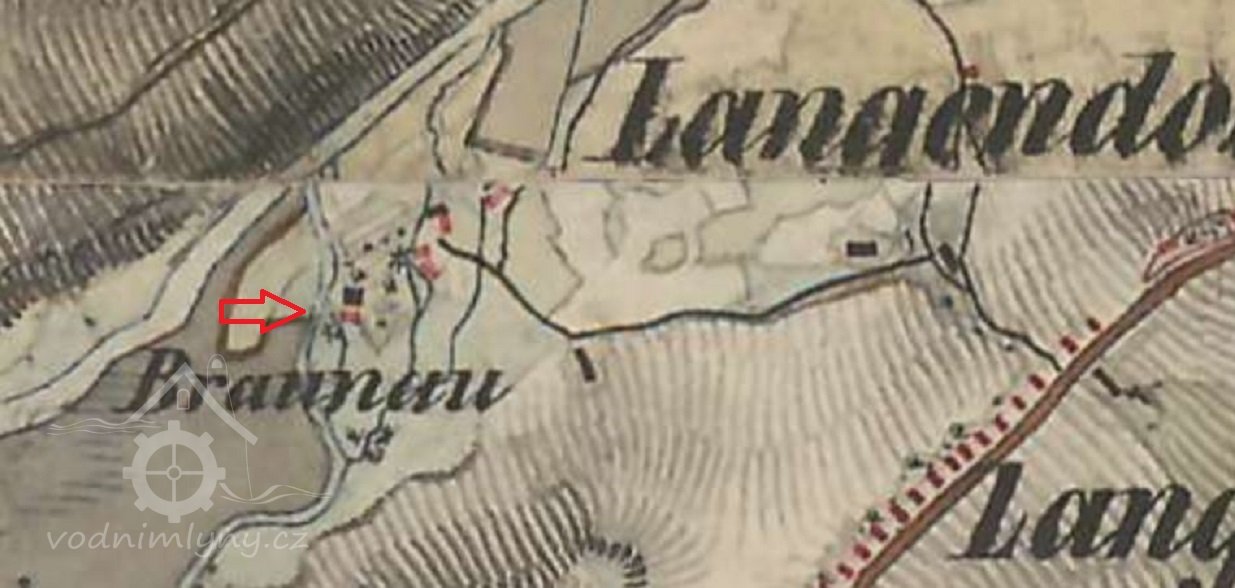 Mlýn zde byl zřízen zřejmě až v 18. století, na mapách I. voj. mapování zachycen není.