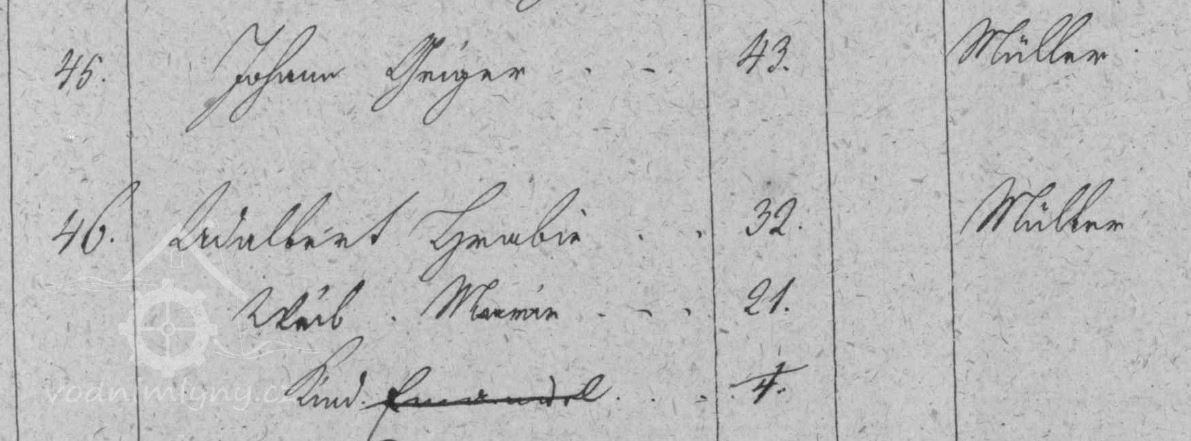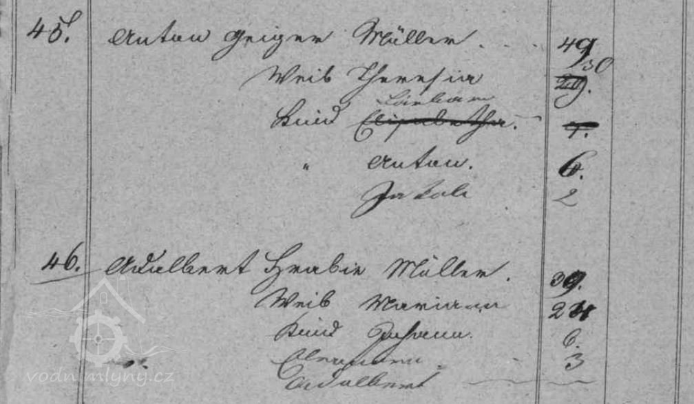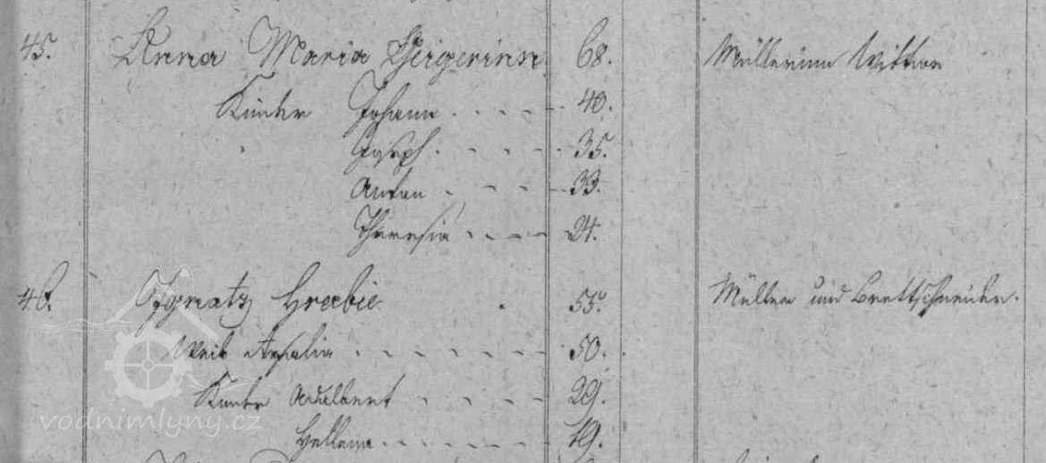 Příjmení mlynářů působících na mlýně: