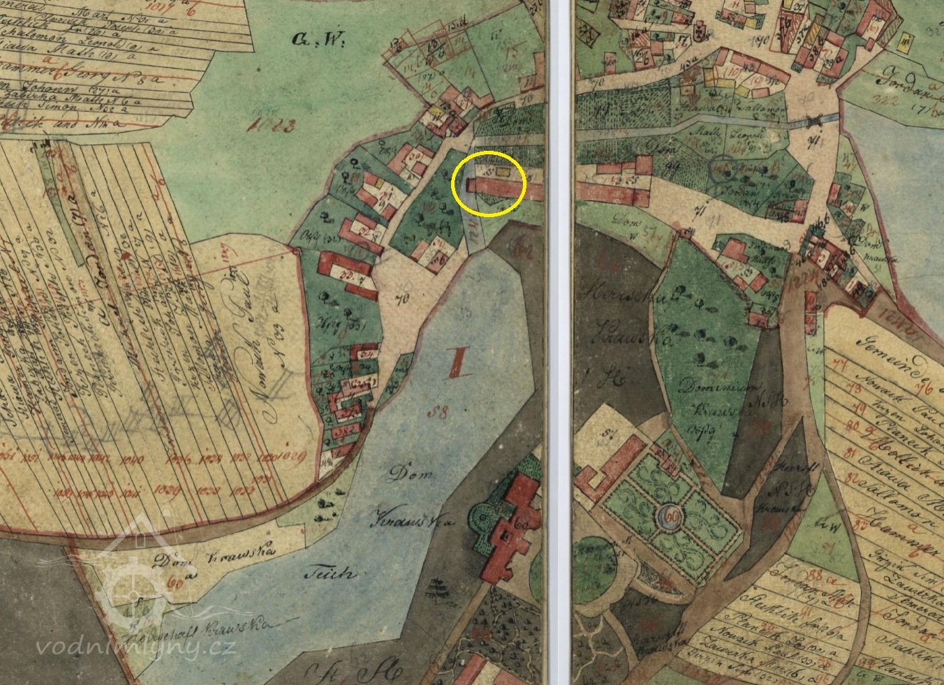 Mlýn v sousedství dosud stojícího pivovaru, příslušenství panského dvora.