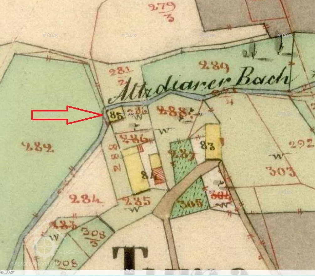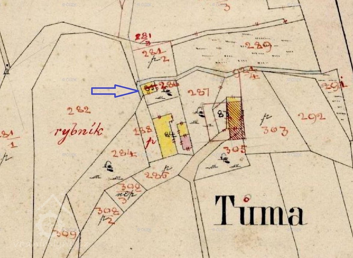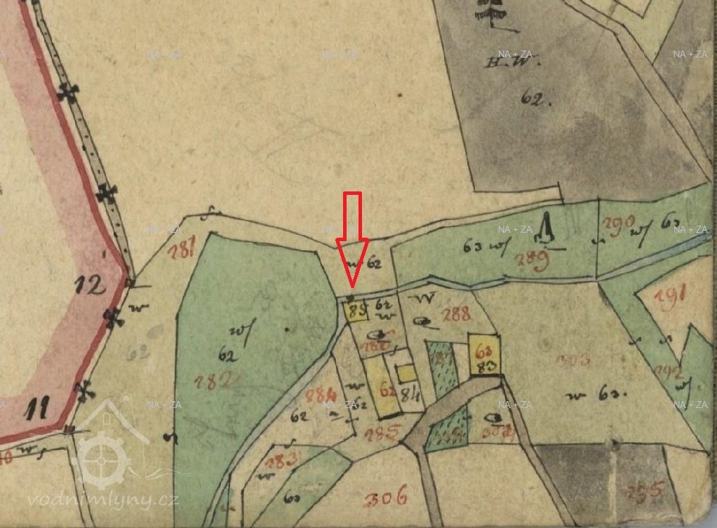 Malá stoupa na tříslo u čp. 62, 1850 doplněná jahelkou a krupníkem. Dnes vše zcela zaniklé, mlýniště leží na oploceném pozemku.
