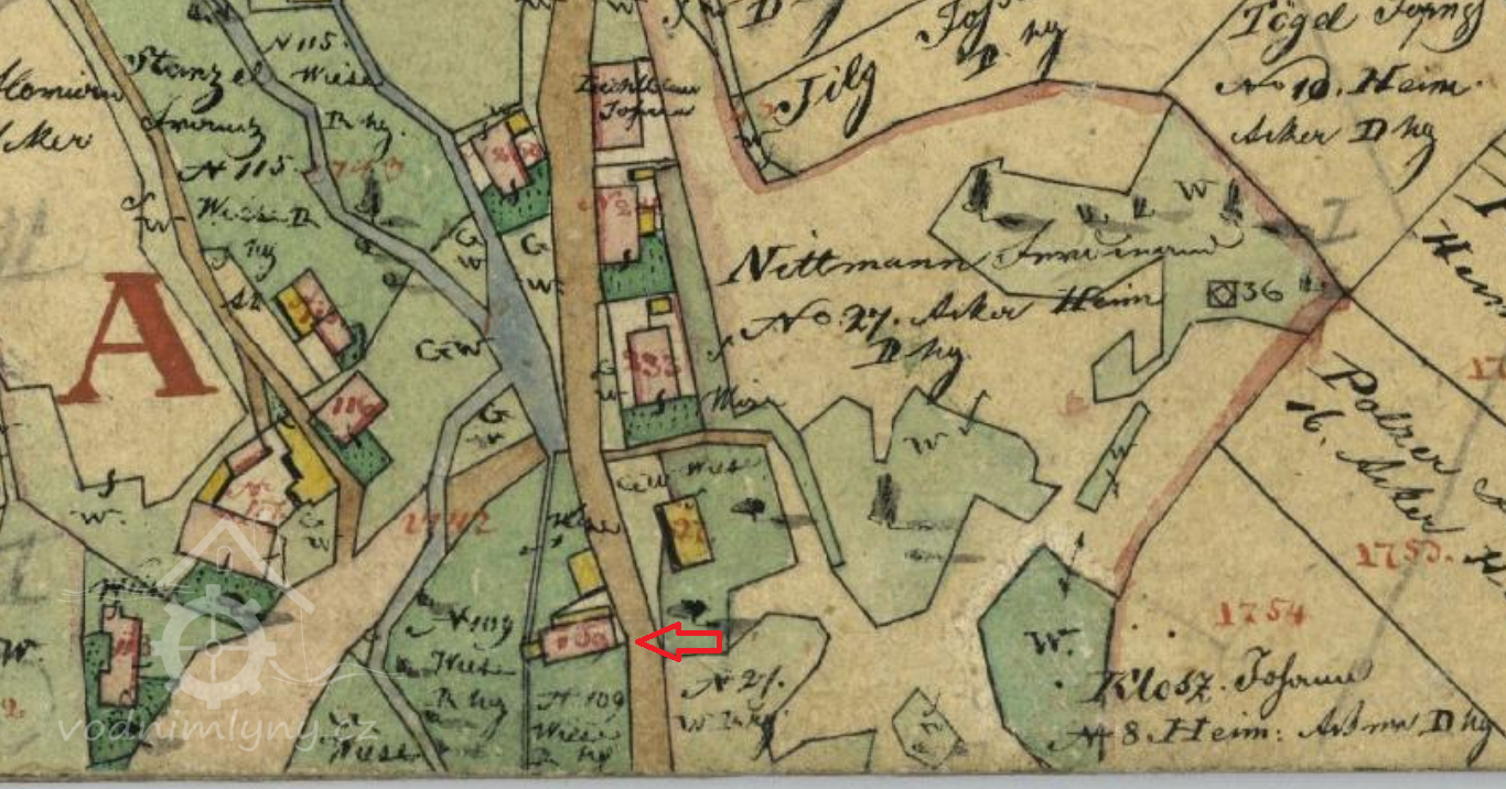 V roce 1837 dostává mlýn vlastní číslo popisné po zbořeném hospodáčství čp.114, majitelem se stává Johann Hampel, který v Moravském Berouně v roce 1840 zastává post cechmistra cechu tkalců. V té době zřejmě mlýn opět změnil svoji funkci.