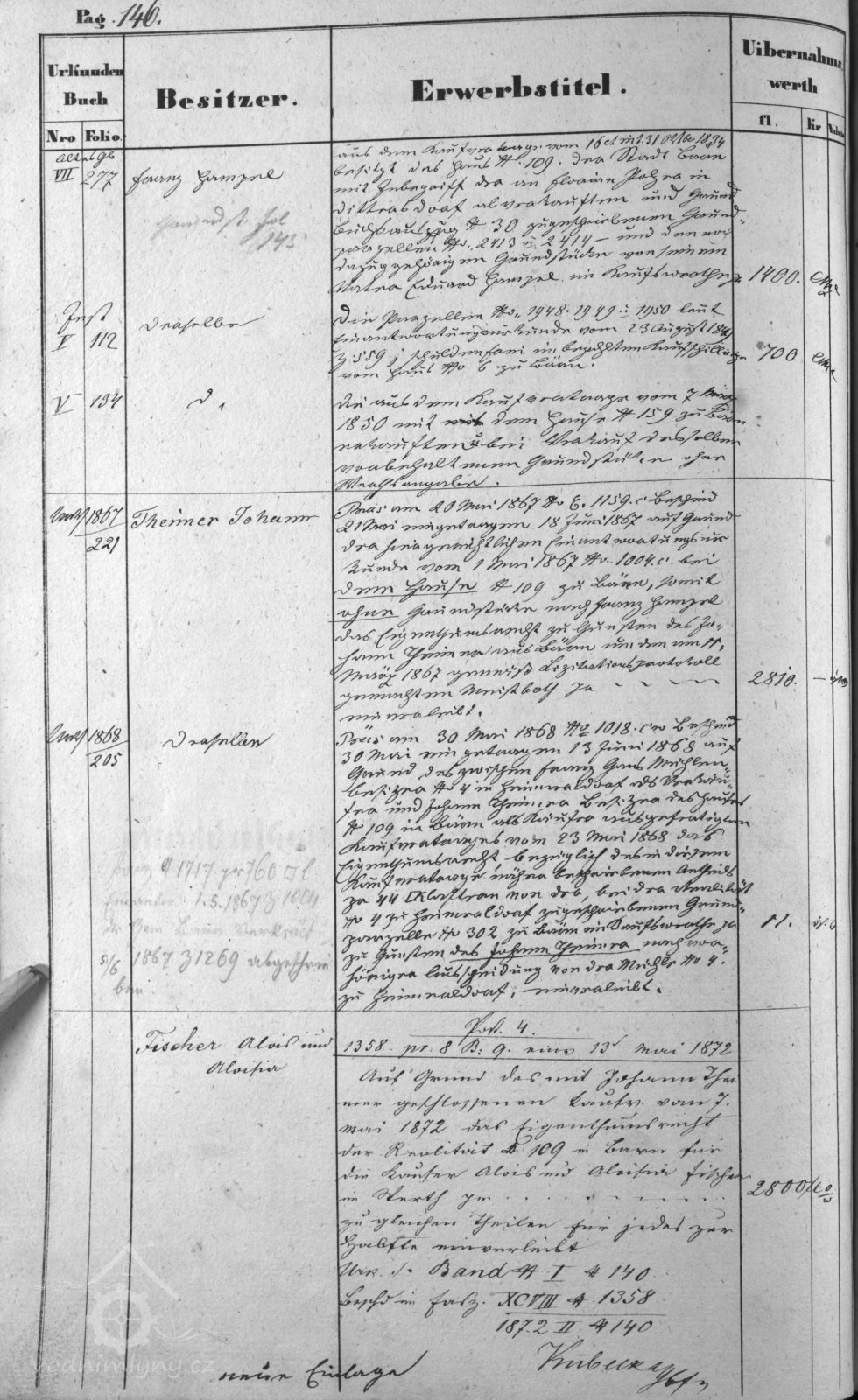 V roce 1867 mění majitele i hospodářství čp. 109, kupuje ho Johann Theimer a v roce 1872 Alois Fischer.