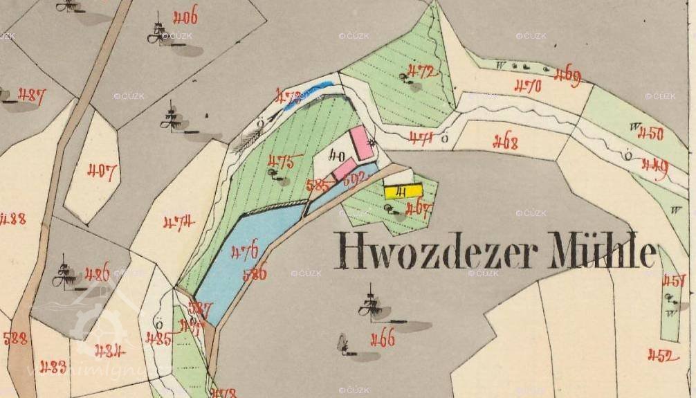 Nad mlýnem býval rybník - zbytky jsou patrné v zarostlém terénu.