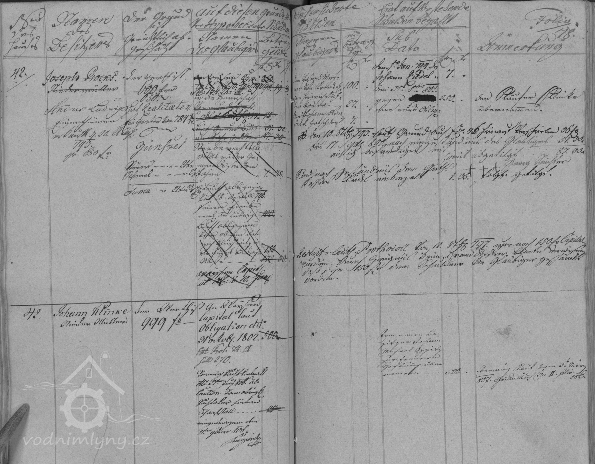 V roce 1793 mlýn vlastní mlynář Joseph Prokš, v roce 1802 mlynář Johann Klinke, v roce 1807 Johann Michael Oppitz, v roce 1808 Ignatz Sebober, v roce 1827 Gregor Gottlieben, v roce 1840 Johann Miler, který mlýn v roce 1843  prodal majiteli panství a velkostatku Henrichu Graf von Arco, který v letech 1842 – 1869 skoupil řadu realit původně poddanských na panství Hošťálkovy, mimo jiné oby mlýny a bělidlo. Roku 1843 vystavěl znovu požárem zničený dvůr v Hošťálkovech.