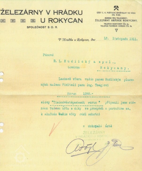 Následující rok se změnil název firmy na „Válcovna železa v Hrádku, dříve R. L. Hudlický a Folta sen., společnost s ručeným omezeným“.