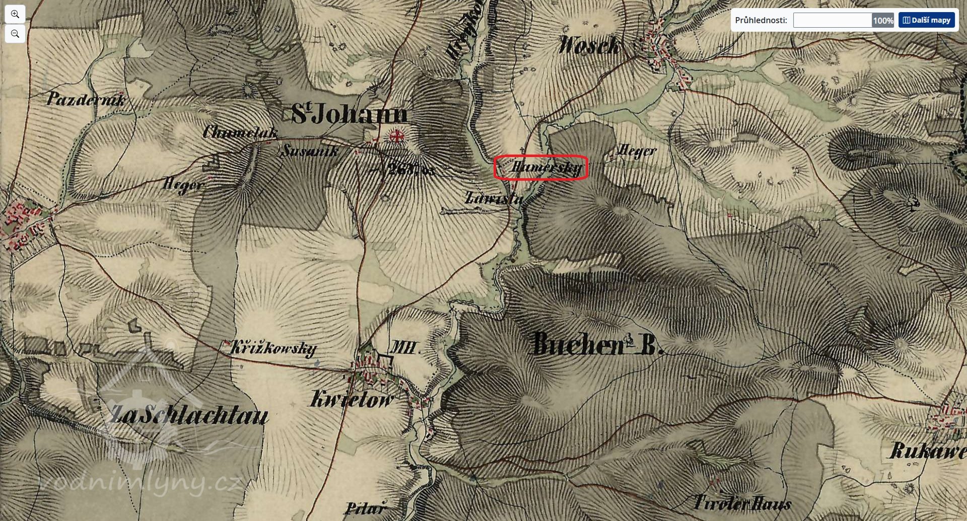 Mlýn ze 17. stol., později sloužil též jako hamr. (Na mlýn upozornila Jitka Kloboučníková.)
