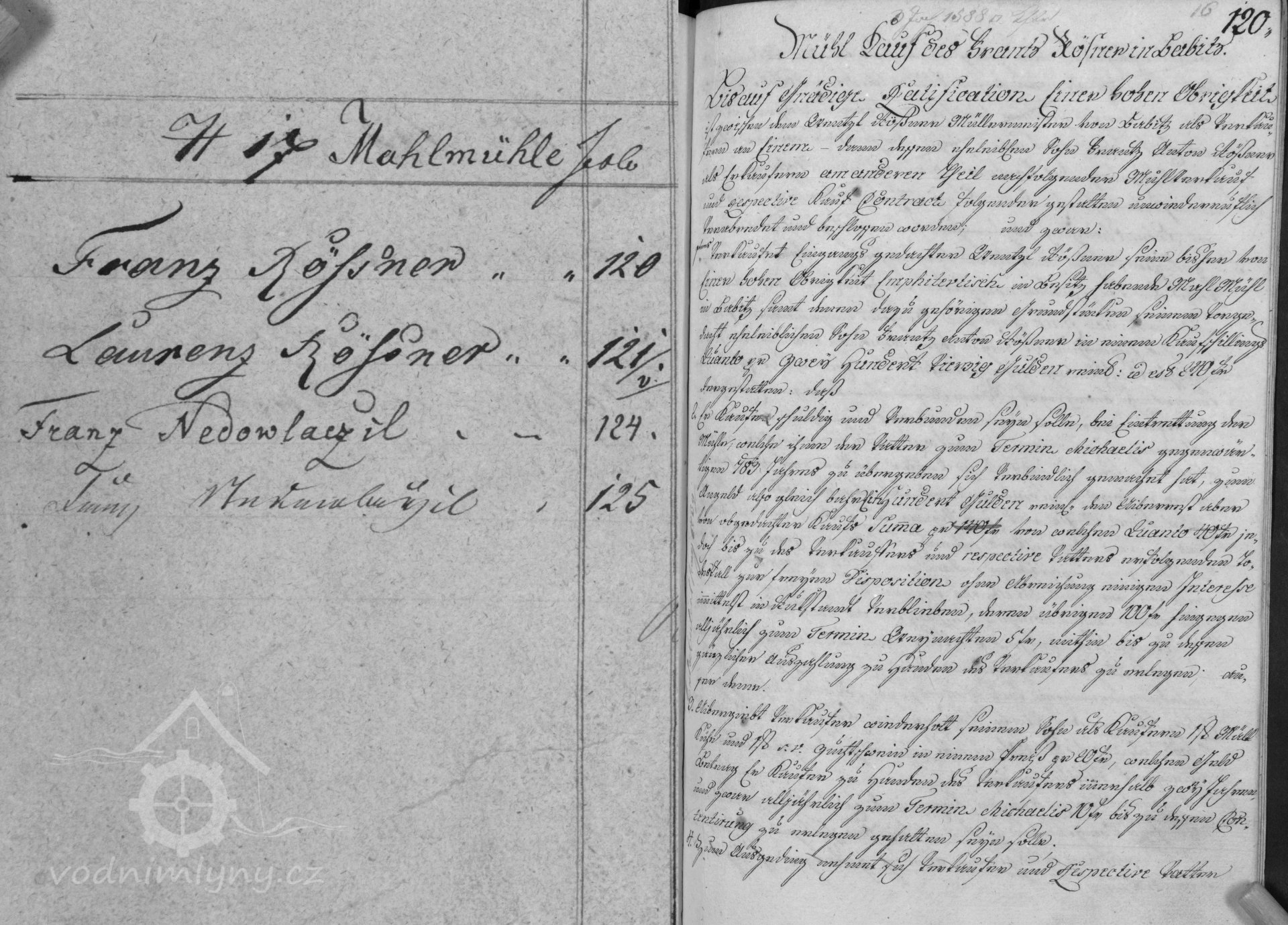 V roce 1783 mlýn vlastní Franz Rözner, v roce 1807 Lorenz Rözner, v roce 1834 Lorenz Rözner.