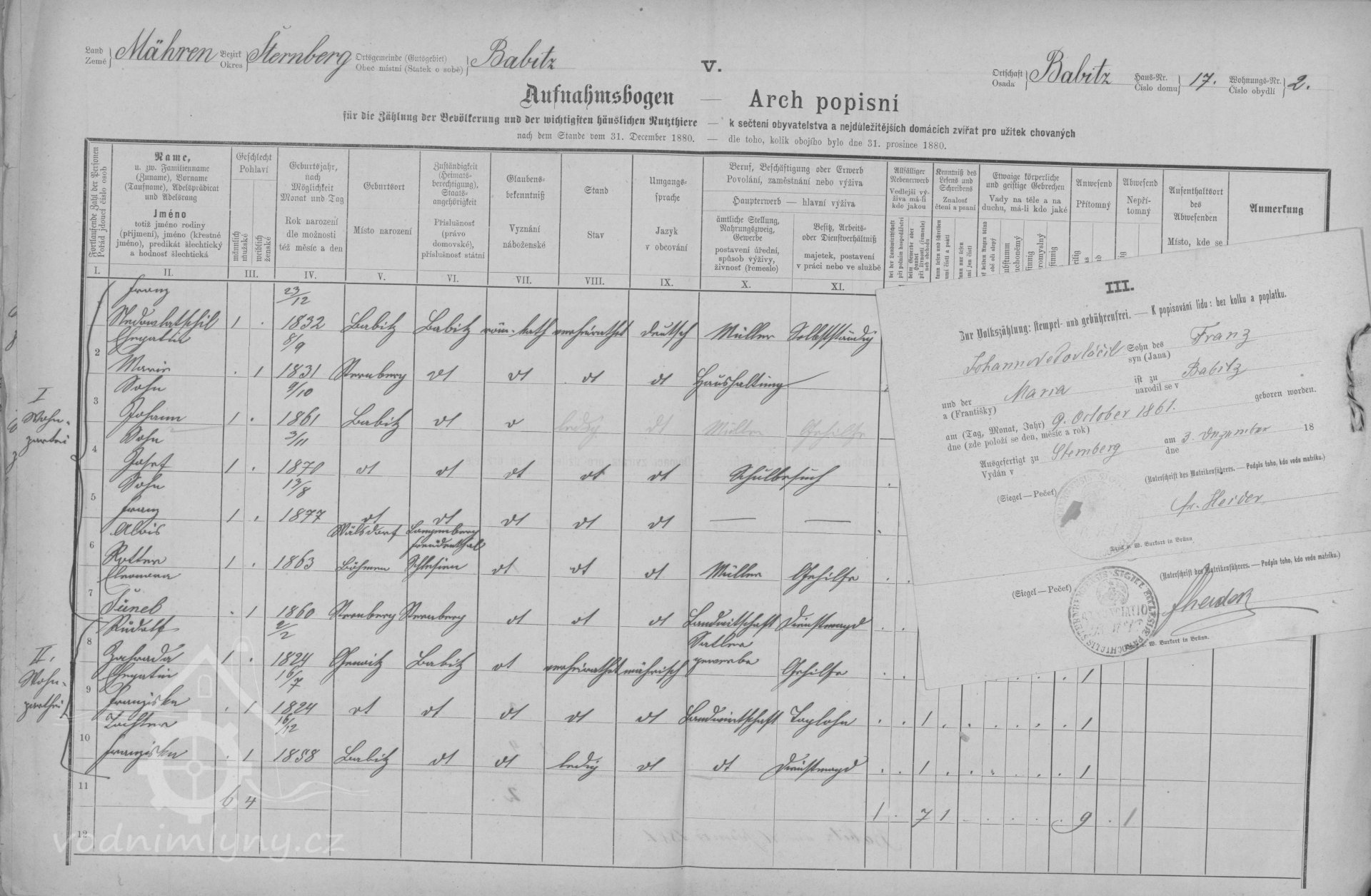Další upřesněníArchy sčítání obyvatel