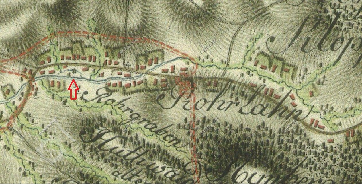 Mlýn je zachycen již na mapě I. voj mapování.