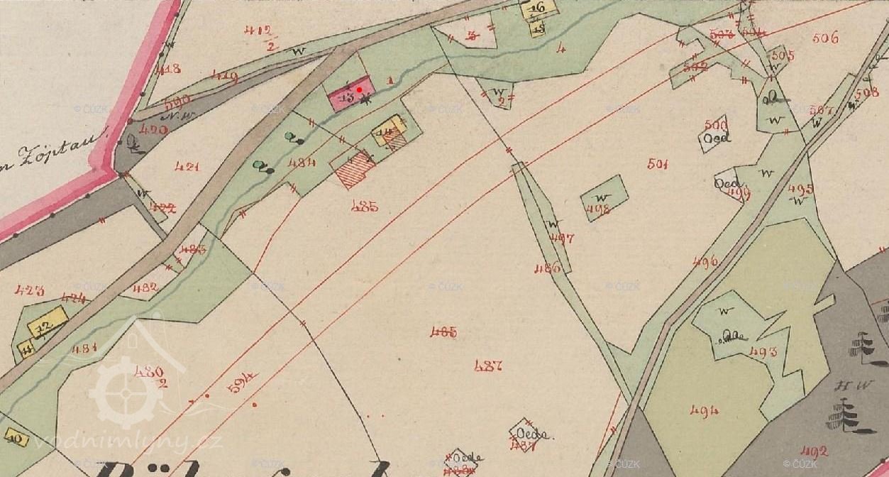 Zcela zaniklý menší vesnický mlýn, později přeměněn na šindelku, zbořen nedlouho po 2. sv. válce. Dnes je parcela zcela zarostlá vegetací.