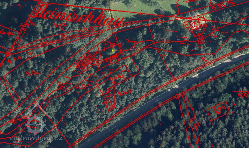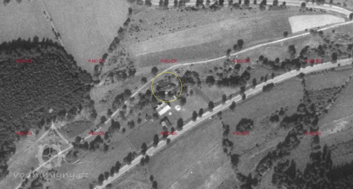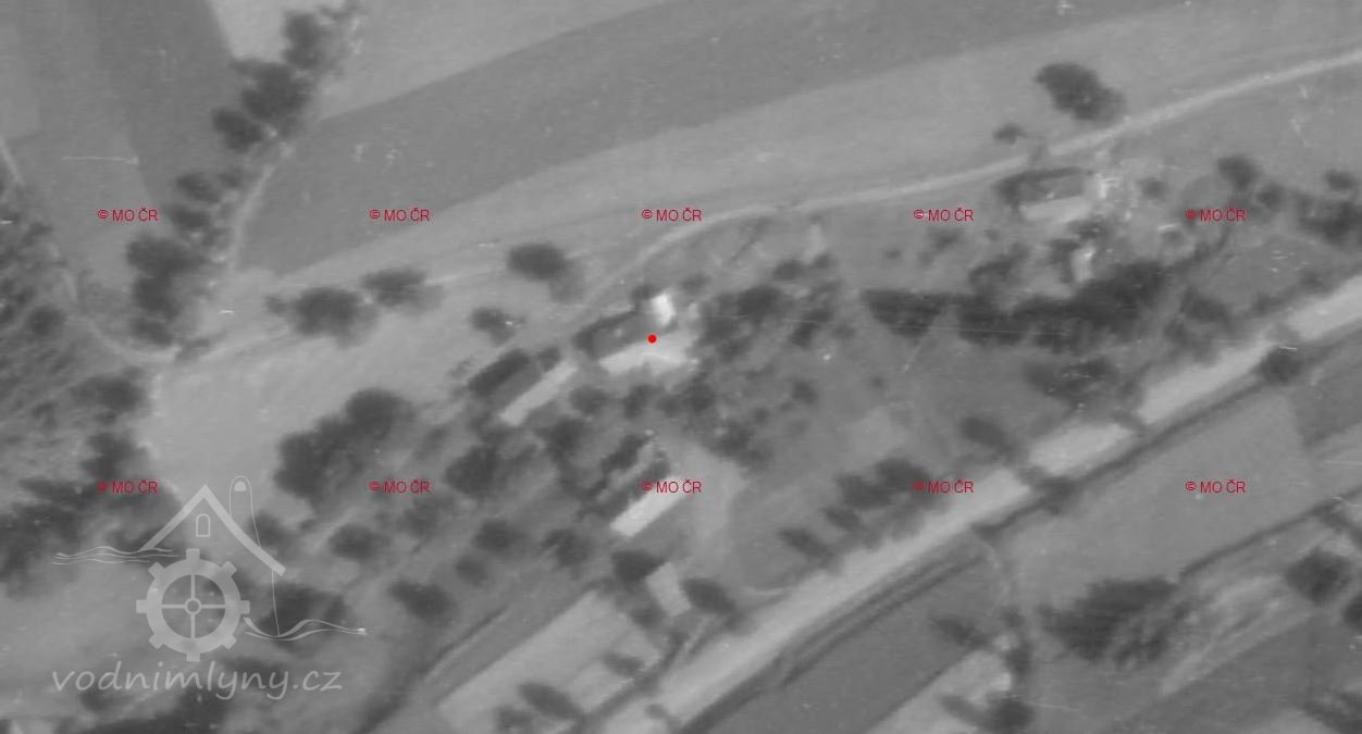 V roce 1947 stojí ještě budova bývaláho mlýna kompletní, v roce 1953 lze vidět pouze zarůstající zbořeniště.