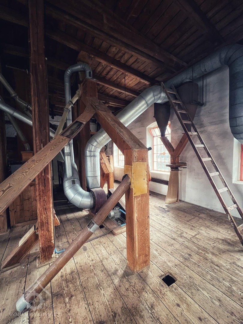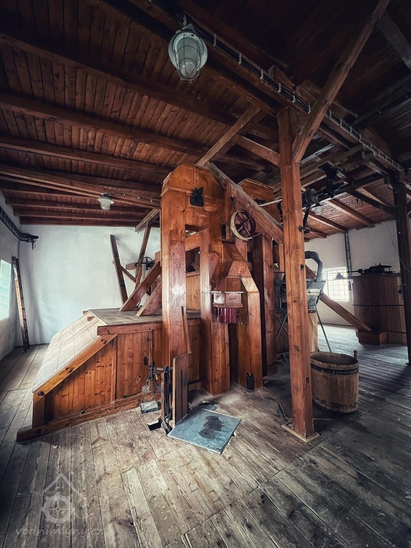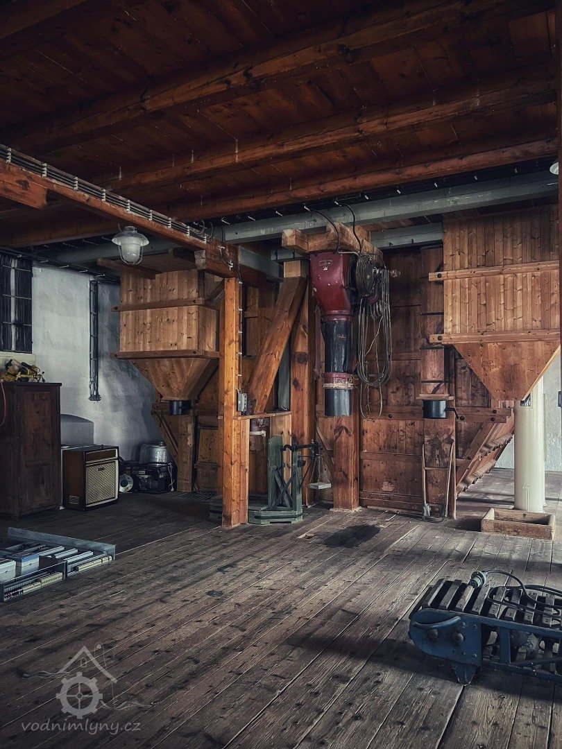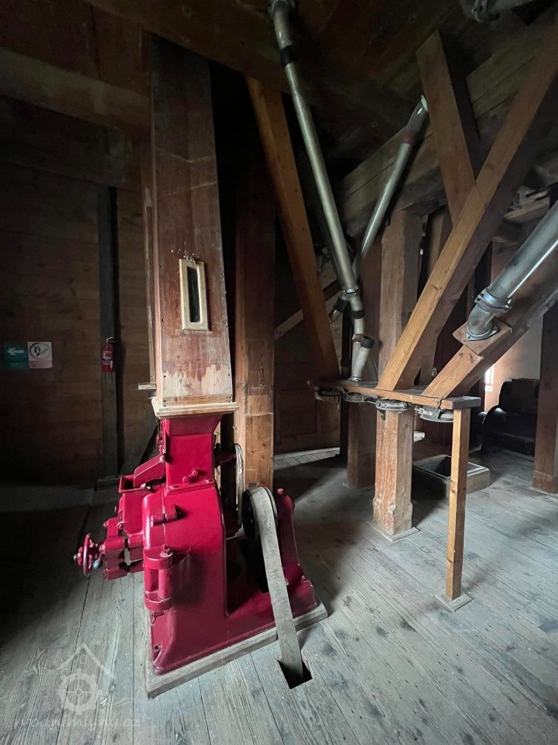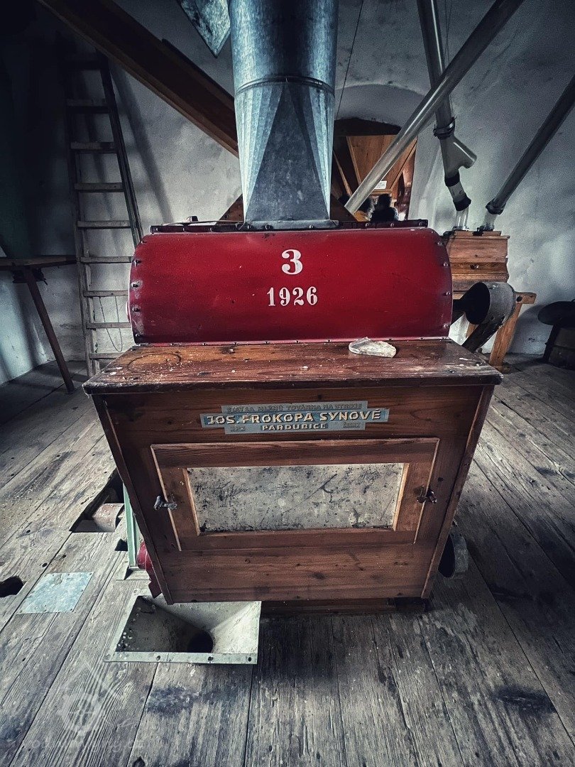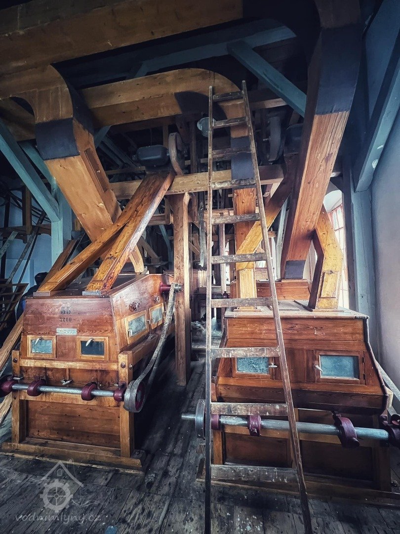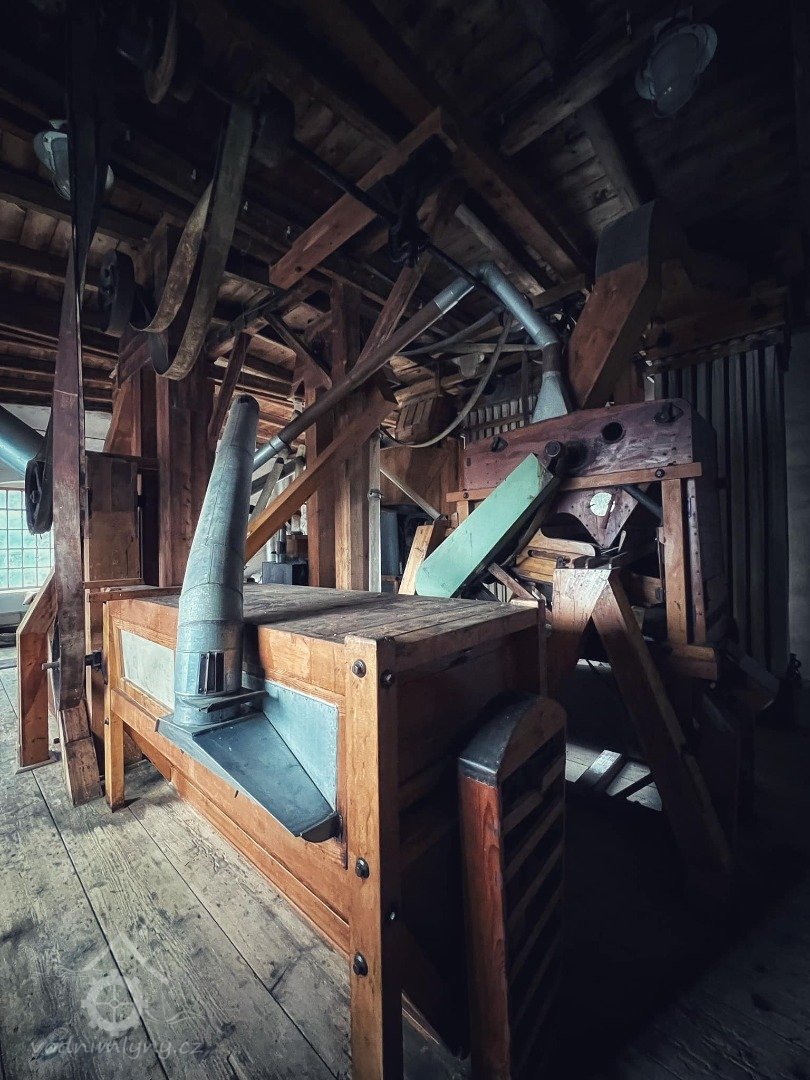 Druhotně použita válcová stolice s rýhovanými válci Josef Prokop a synové, převody pomocí litinových věnců s dřevěnými palci.