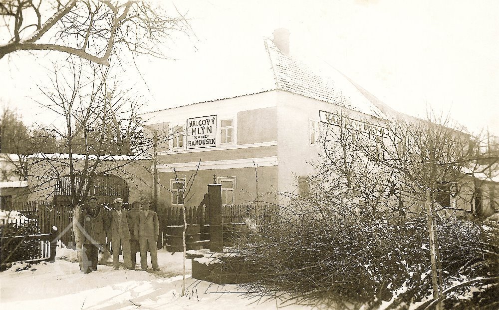 Cca po r. 1933 byl na mlýně nápis - Válcový mlýn Karel Hanousek, z boční strany jen Válcový mlýn. Mlýn měl plastickou omítkovou výzdobu. Do dvora mlýn vedla brána - viz historické foto