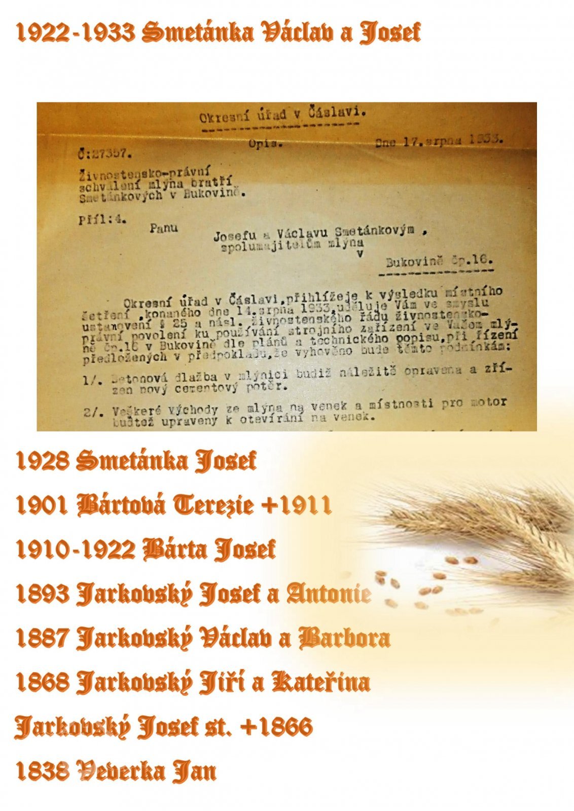 Další upřesněníSoupis mlynářů, dokumentů apod, viz foto Ostatní