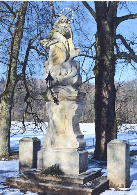 1796 před mlýnem postavena socha Neposkvrněného početí P. Marie s dedikačními nápisy manželů Ludrových