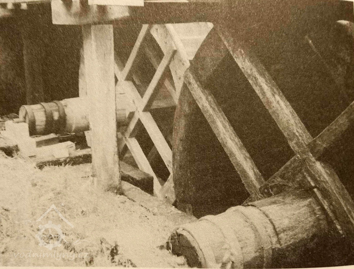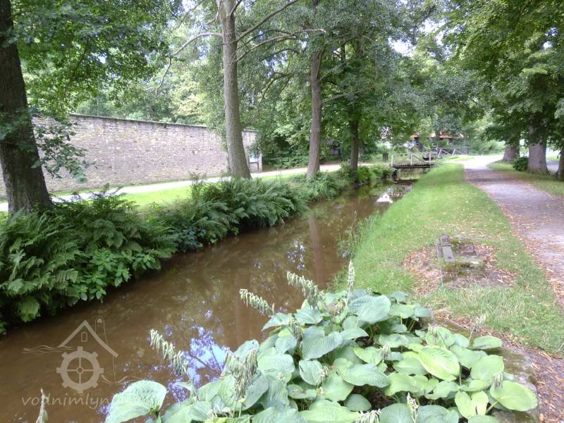 Při stavení náhon se stavidlem a zastavené chátrající nepřístupné a skryté vodní kolo od zrušené turbiny.