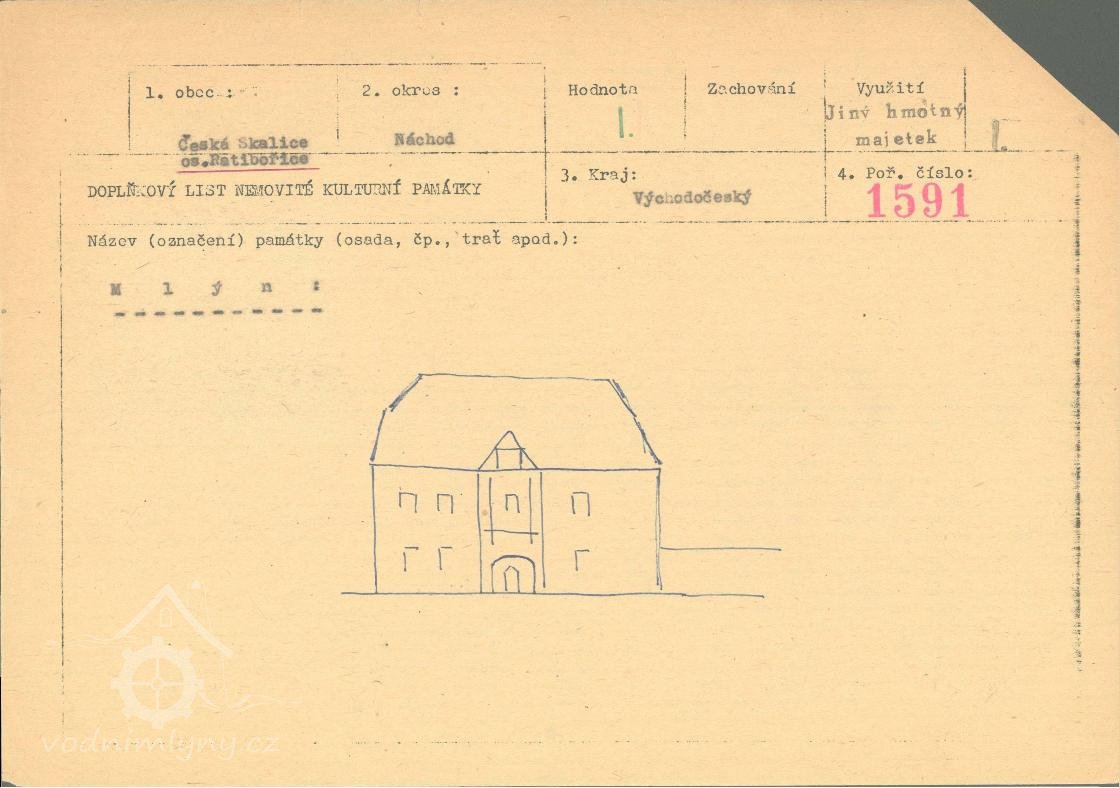 Roku 1651 je uveden Mlejn Ratibořský, který patří pod panství Náchodské. Mlynářem je zde Jiřík Lokvenc (věk 60 let) spolu s manželkou Dorotou (26 let). Mlynář má 3 děti (Martin 20 let, Dorota 18 let, Jiřík 15 let), ale ty jsou zřejmě z předchozího manželství.