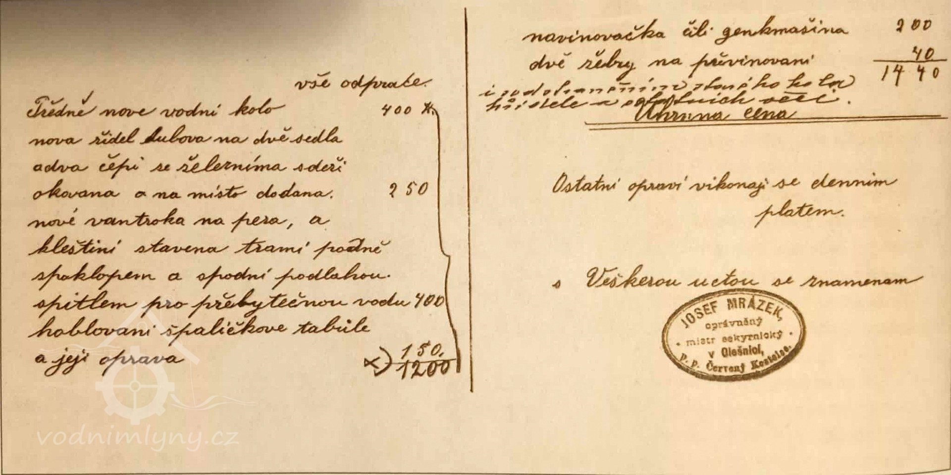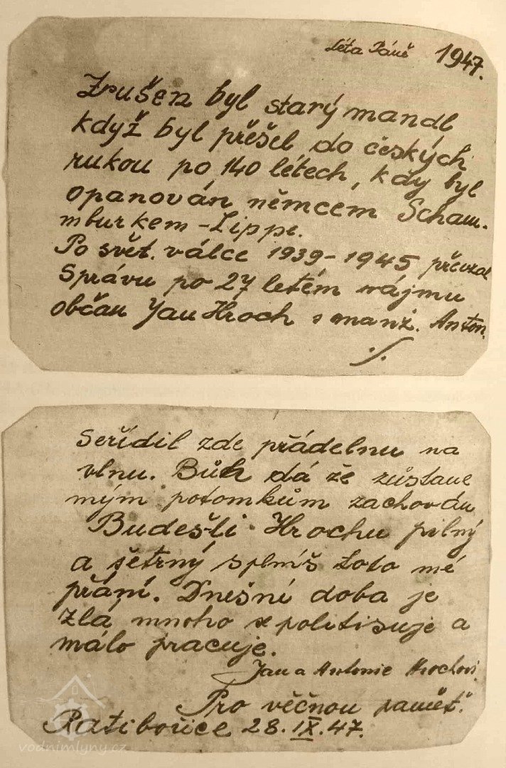 1901 byl správcem mlýna Rajmund Vavřena.