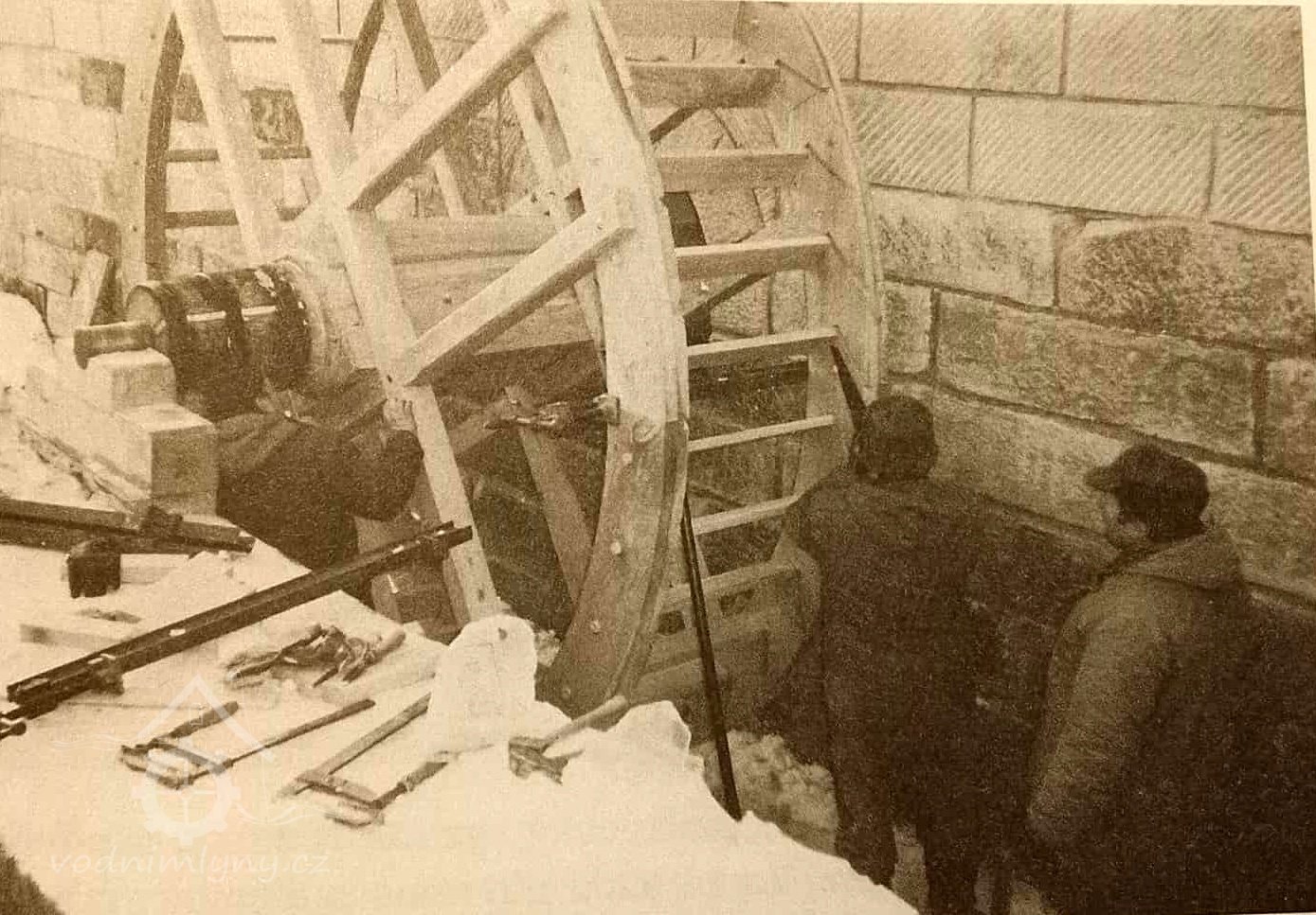 V roce 2013 dvě funkční vodní kola a třetí se rozpadá.