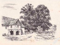 Dvůr uzavřen vraty, ve dvoře obdélné stavení přízemní, pravoúhlá okna, nečleněné stěny, střecha valbová.