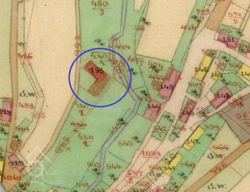 1930: 1 kolo na svrchní vodu, hltnost 0,035 m3/s, spád 6 m, výkon 2,1 HP