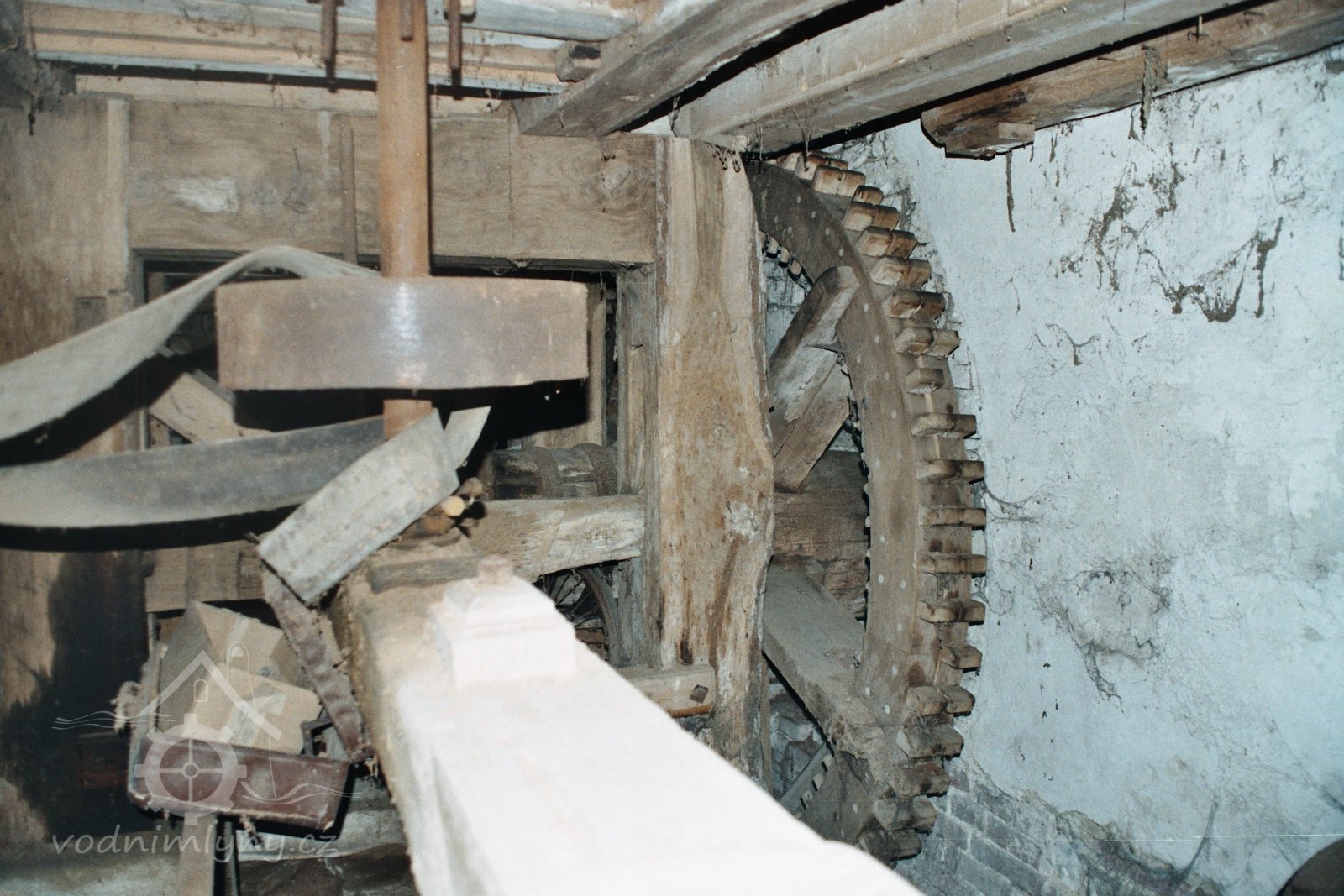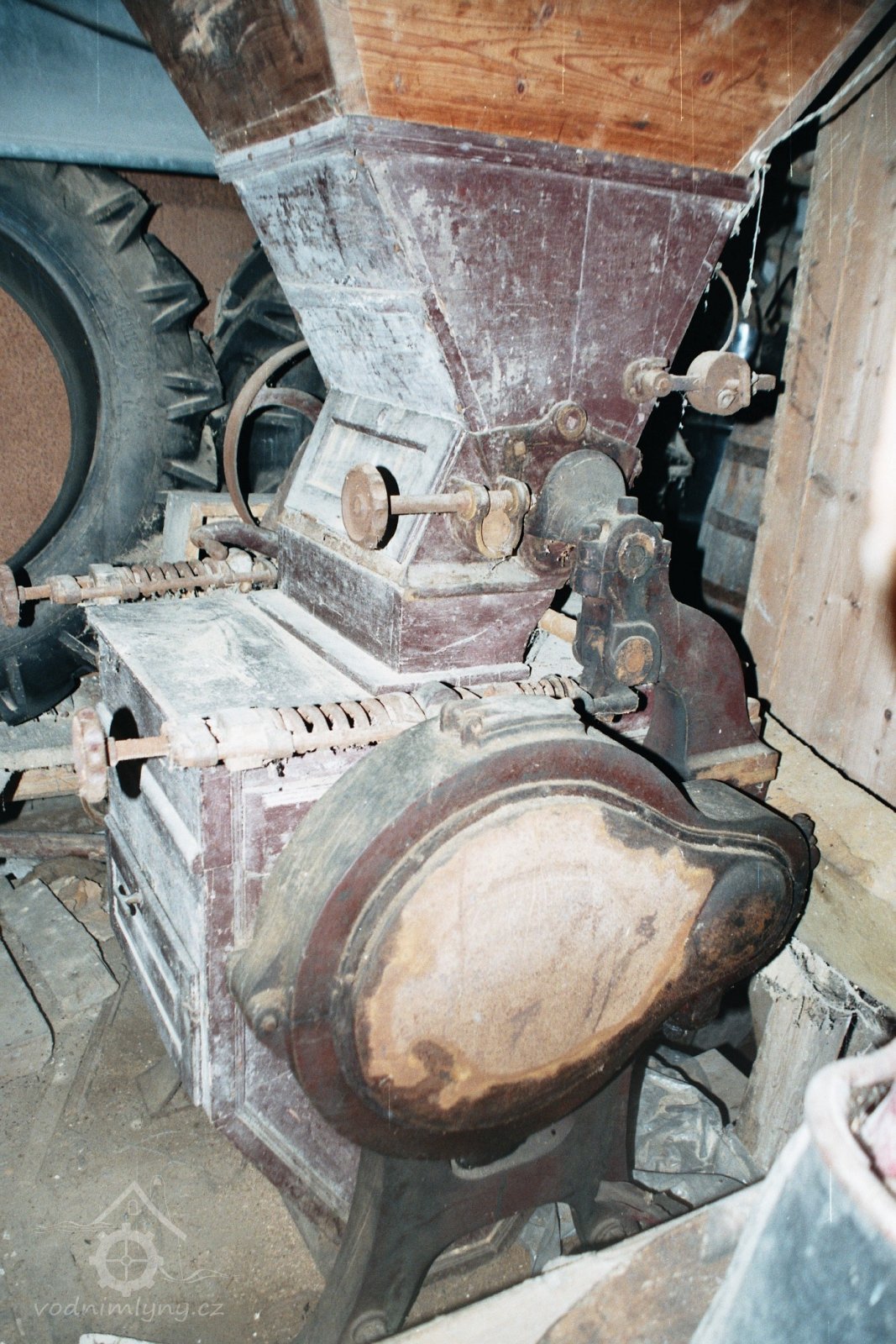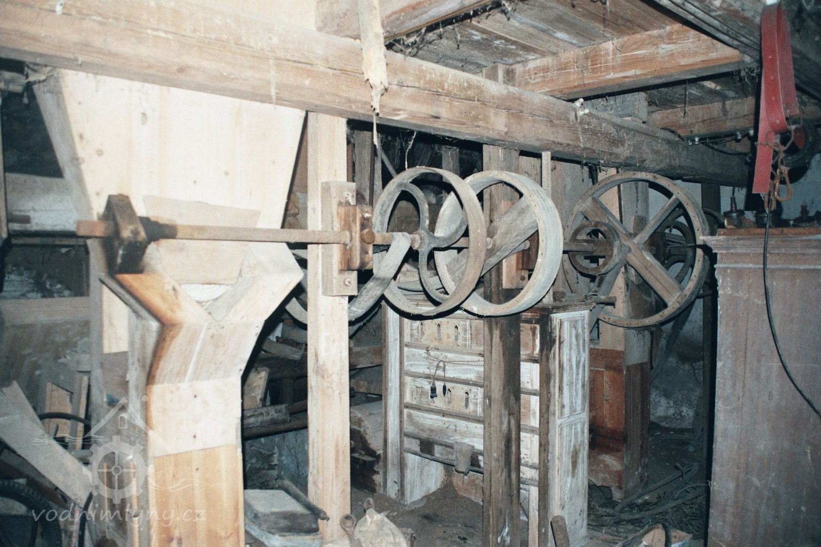 Od velkého vodního kola procházela do mlýnice dřevěná hřídel, která otáčela nejprve větším čelním pal. kolem a to pak otáčelo přes cévník další dřevěnou hřídel s bočním palečním kolem. Boční kolo pohánělo vertikální hřídel mlecího složení kamenů a horizontálně pastorek s litinovou řemenicí, jenž dále roztáčela transmisí v podkolí, uchycenou u na trámech. Transmise pak poháněla všechny stroje a ještě malou transmisi pod střechou, dále druhé složení kamenů přes zkřížený řemen a krupník. Čelní paleční kolo ještě roztáčelo pastorek s dřevěnou řemenicí, na kterou se dle potřeby nahazoval řemen pro transmisi vedoucí do stodoly pro pohon doplňkových a zemědělských strojů. V podkolí se nachází pěkná zdobená moučnice s prosévacím zařízením. Unikátem pak je zde malá jednoduchá štoska čistící jáhly popřípadě i hrubou krupici. Je zde i pěkně zachovaný krupník. Mlýnská hranice je řemeslně zdobená. Na první podlaze stojí válcová stolice s dřevěnou skříní a rýhovanými válci. Vyrobená byla na konci 19. stol. pravděpodobně firmou J. Hübner a K. Opitz - Pardubice cca r. 1892 - 1895. Vedle je malá periodická loupačka a kamenné mlecí složení. Ještě je zde francouzké mlecí složení. Patry prochází několik kapsových dopravníků a pod střechou je velký moučný hranolový vysévač, čistící hranolový vysévač s koukolníkem, malá reforma a šnekový dopravník.