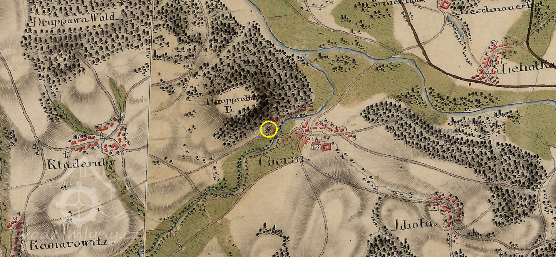 mlýn, mechanická tkalcovna, barevna látek a pila v Choryni