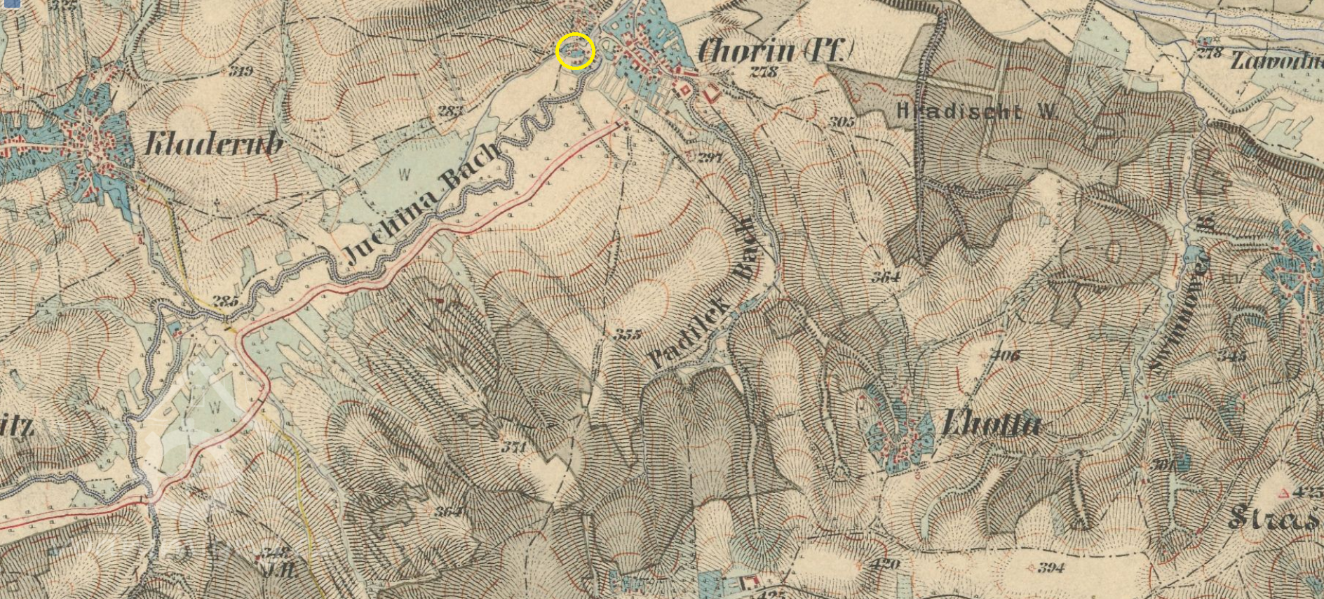 1639 - v Choryni byla tvrz, dvůr, pivovar, mlýn s pilou