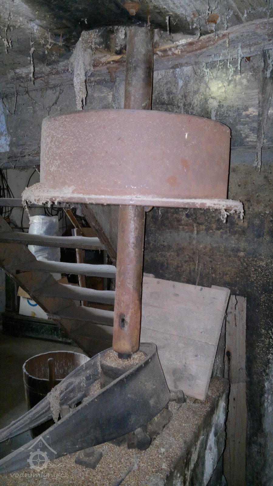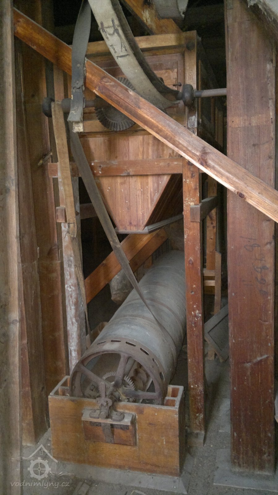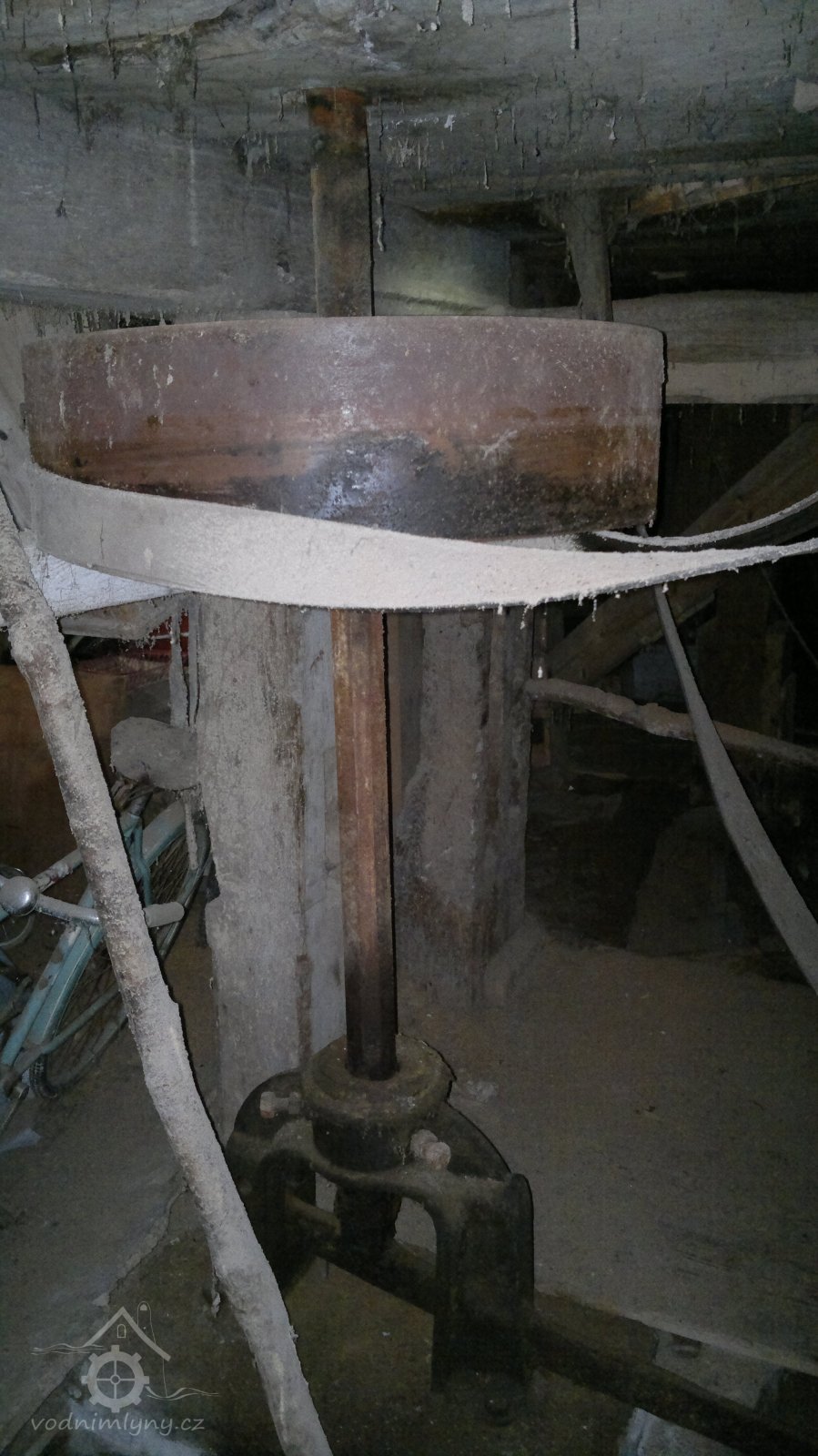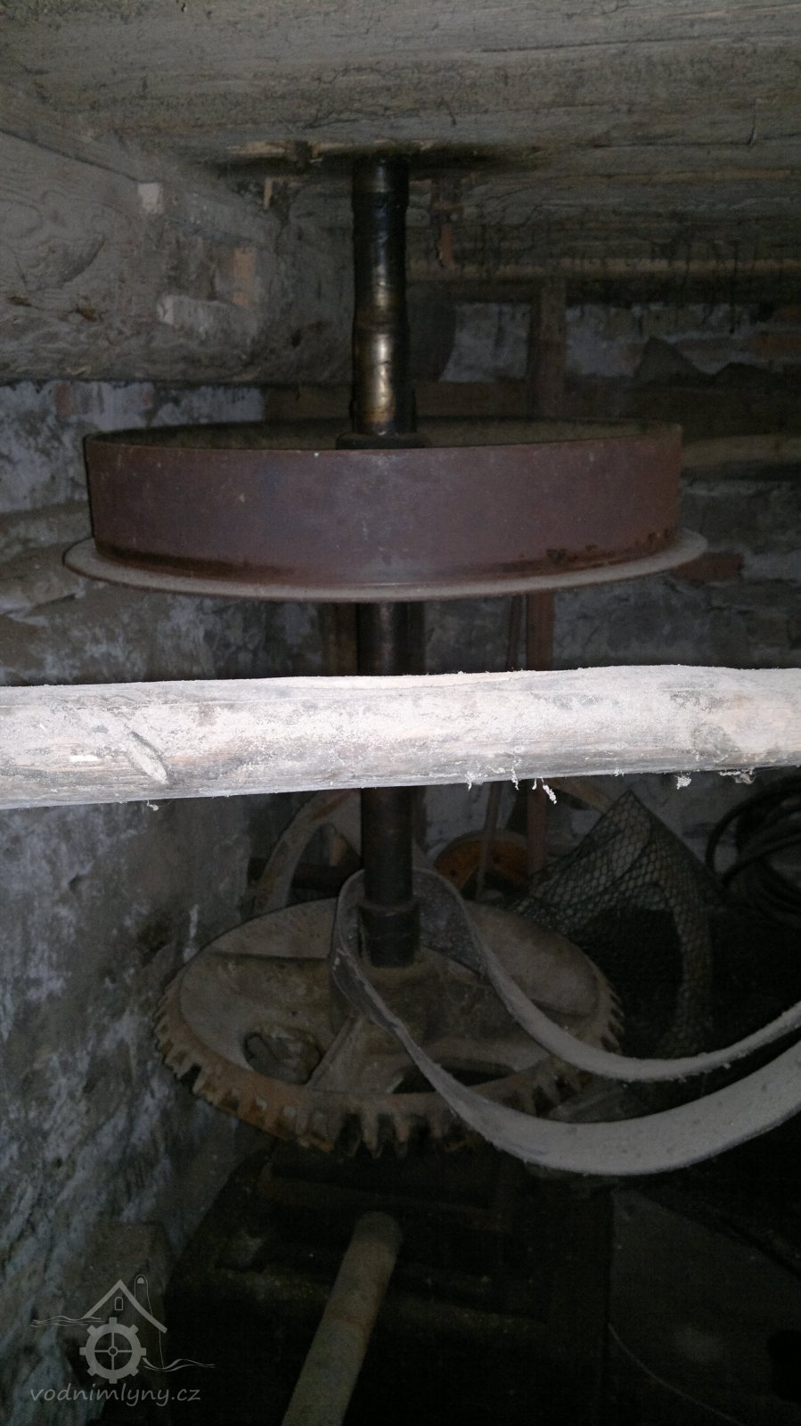Od vodního kola prochází dřevěná hřídel otvorem do spodního prostoru mlýna – podkolí. Na hřídeli je osazen na dřevěných ramenách litinový věnec s dřevěnými bočními palci (hlavní paleční kolo). Tyto palce zapadají do pastorku. Pastorek nasazený na vertikální kovové hřídeli a tvoří s palečním kolem pravoúhlý převod. Na této kovové hřídeli osazeno též čelní litinové paleční kolo, jehož palce zapadají do dvou samostatných pastorků. První pastorek roztáčel svislou (vertikální) hřídel kamenného mlecího složení, které sloužilo k domílce. Druhý pastorek otáčel taktéž další svislou hřídelí. Tato hřídel prochází několika podlažími a nazývá se královská. Od ní pak pomocí dalších pravoúhlých převodů roztáčeny rozvodové transmise jdoucí do prostoru mechanické tkalcovny, barevny a valchy mimo mlýnici. Na úplně spodní části této hřídele (v podkolí) se nachází malý pravoúhlý převod k pohonu hlavní horizontální (vodorovné) transmise k roztáčení mlýnských strojů na prvním podlaží a v podkolí. Také roztáčela další rozvodové transmise v mezipatře a pod střechou přes kožené ploché řemeny a odtud pak poháněny jednotlivé mlýnské stroje ve vyšších patrech.