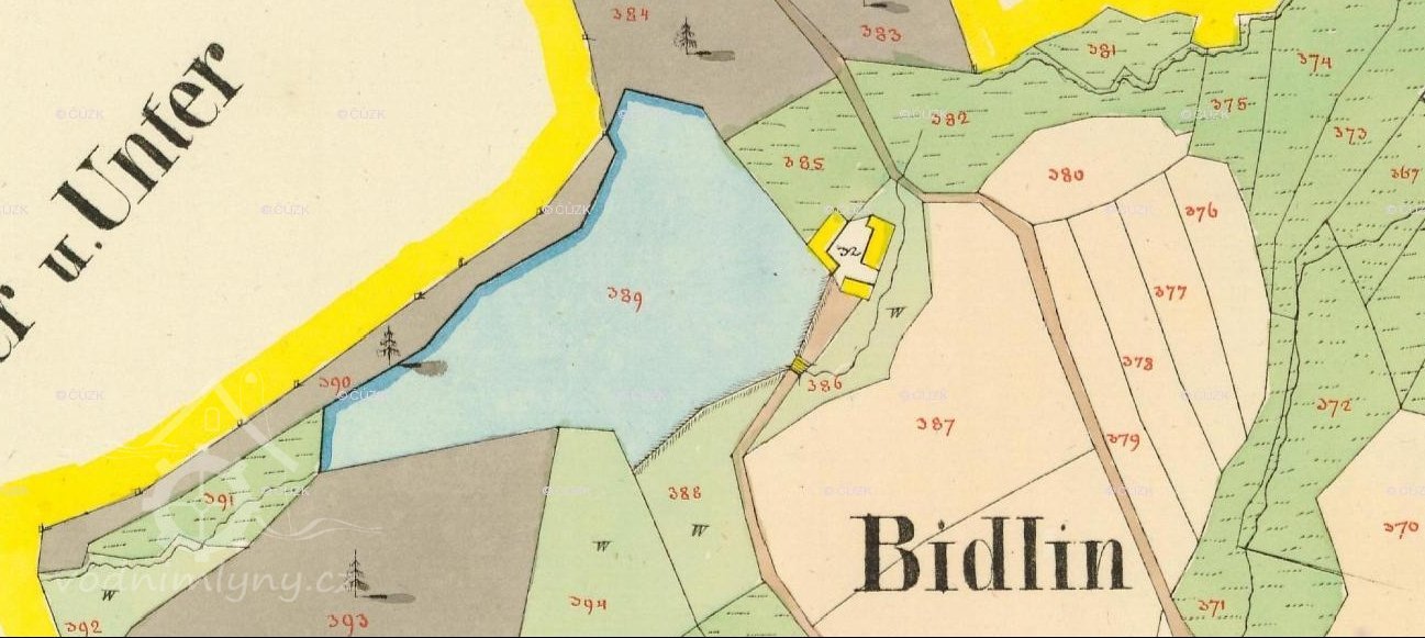 Popis1930: 1 kolo na svrchní vodu, hltnost 0,113 m3/s, spád 4,5 m, výkon 4,4 HP