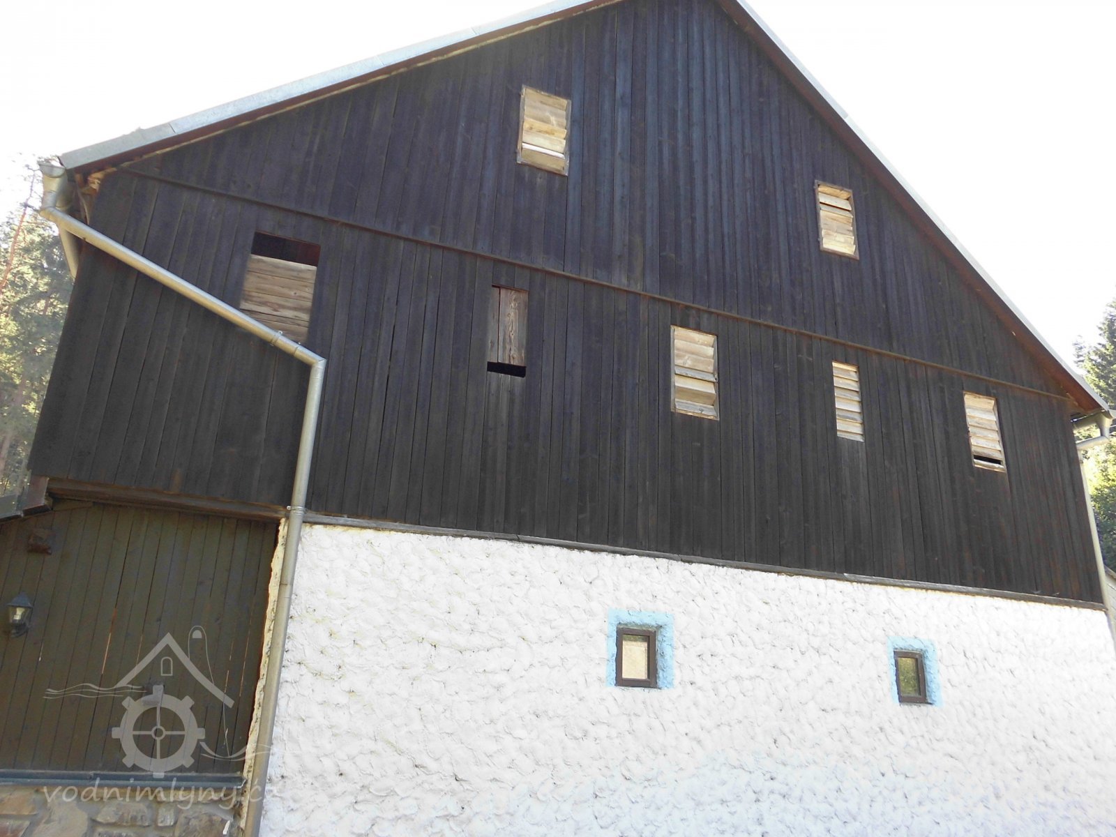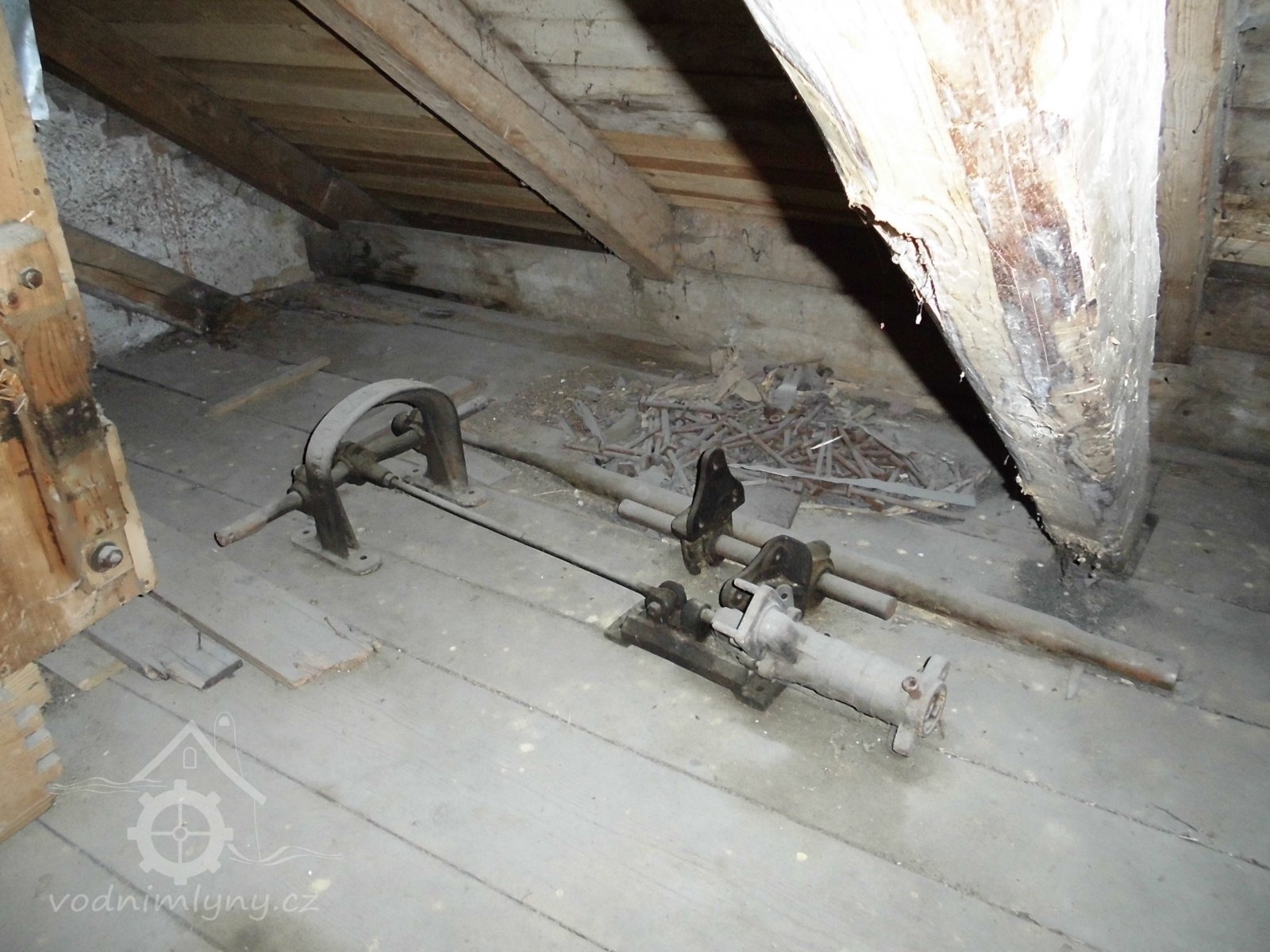 vodní kolo s výstrojem, 2 transmise s řemenicemi, 1 dynamo s instalací