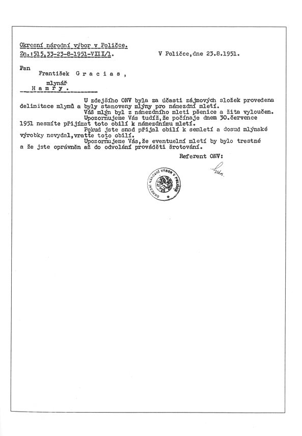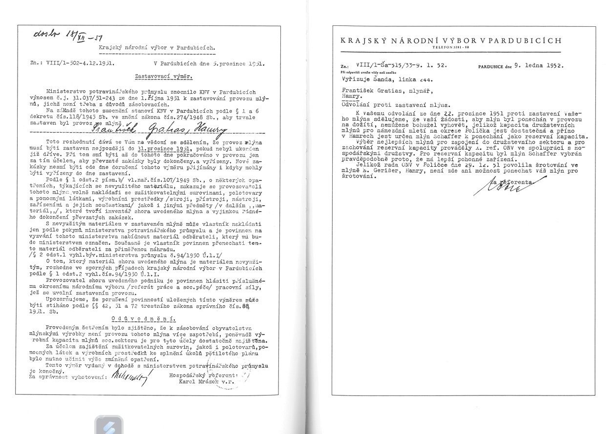 k 31.12.1951 mlýn úředně zastaven, odvolání nebylo vyhověno1