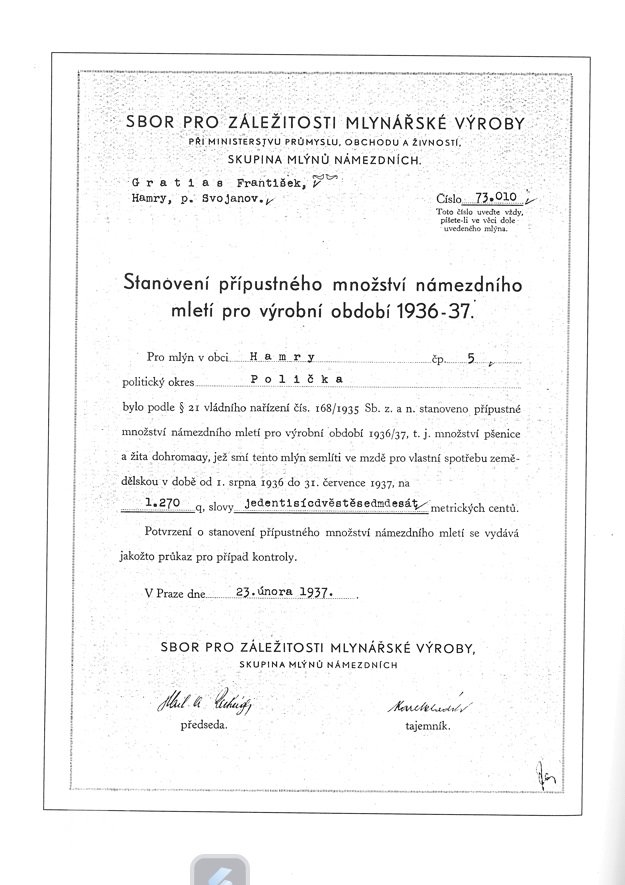 V roce 1930 mlýn vlastní Jan Gracias.