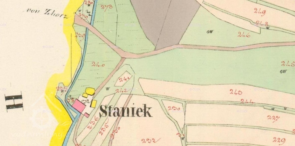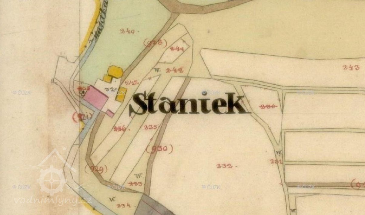Léta Páně 1600 ve středu po [pa]mátce svatých Filipa a Jakuba [1600, 3. květen] Jiřík Černej a Jakub Mikeš, sousedé ze vsi Zhořce, též Stanislav Mynář[!] pode Zhořcem, vysvědčení učinili před osobami radními........... Je velmi pravděpodobné, že mlýn dostal název právě po tomto Stanislavovi (Gib)