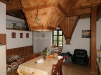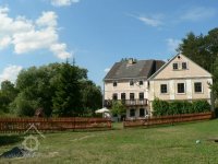 Částečně zrekonstruovaná budova bývalého mlýna, upravená na penzion se zbytky zařízení včleněných do nových interiérů.
