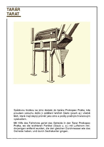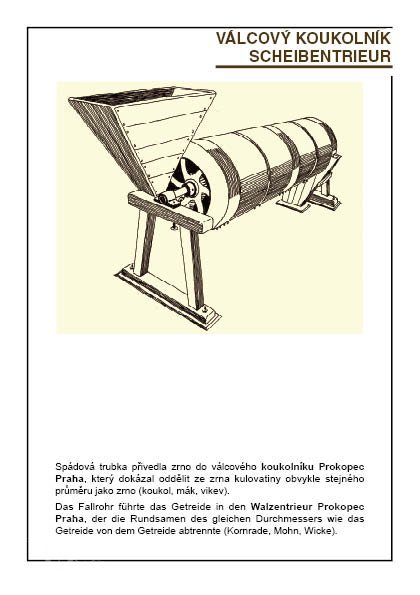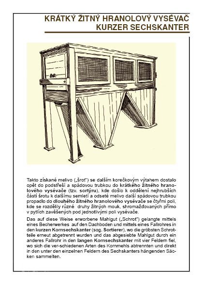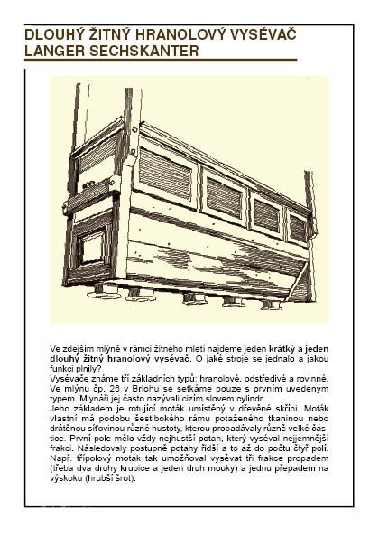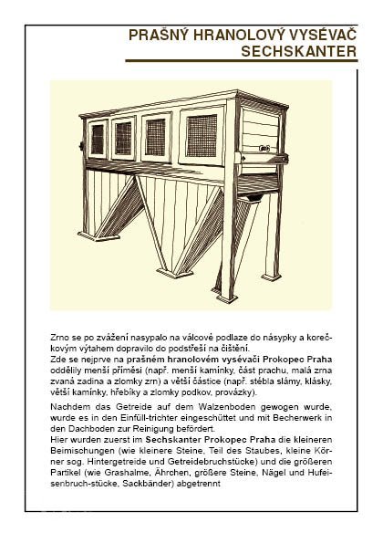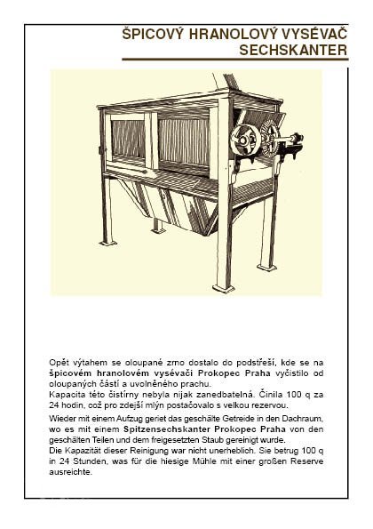 2 velké hranolové vysévače (moučné o délce asi 5 m s pěti propady) s drátěným potahem (jeden z nich s předvysévačem)
