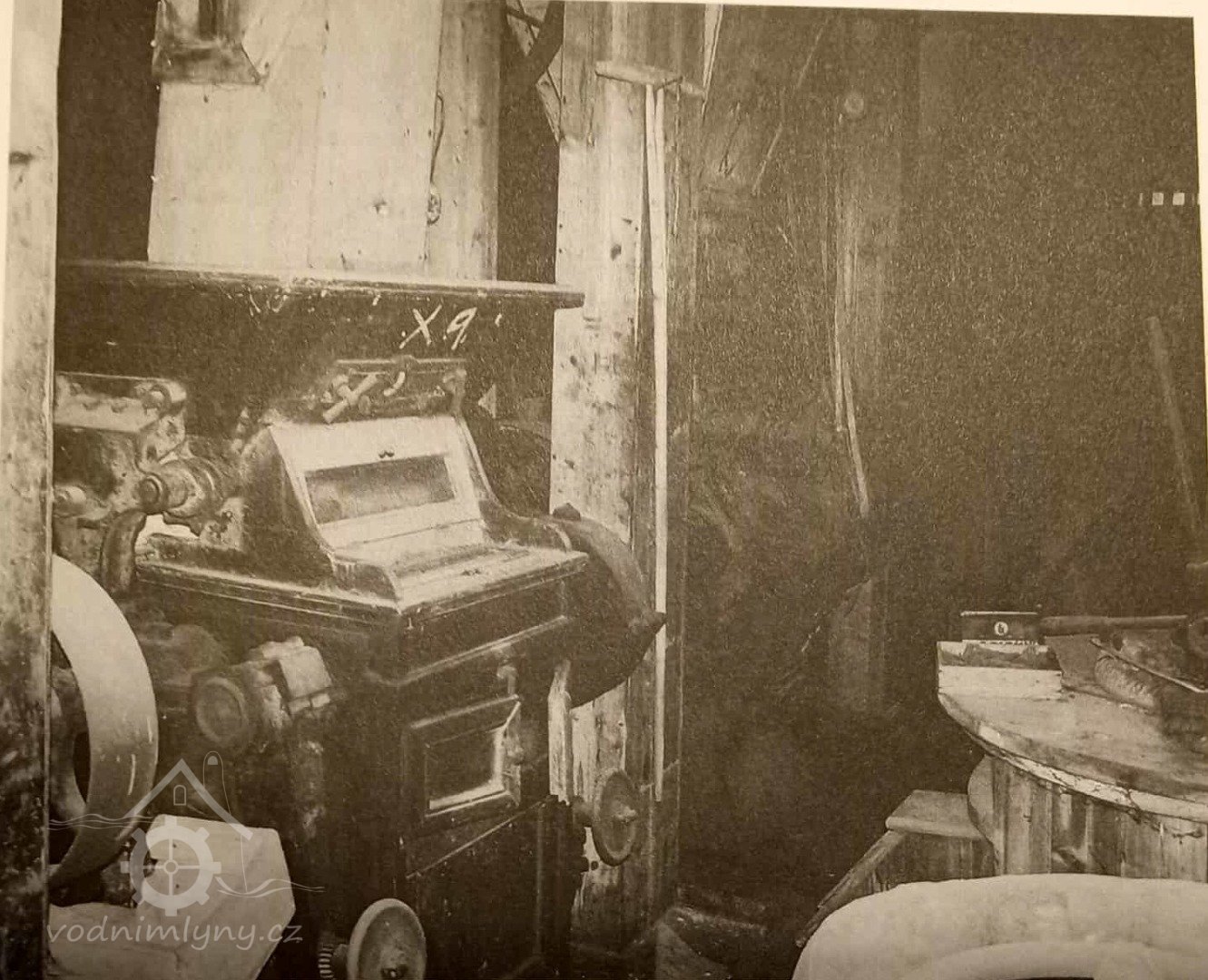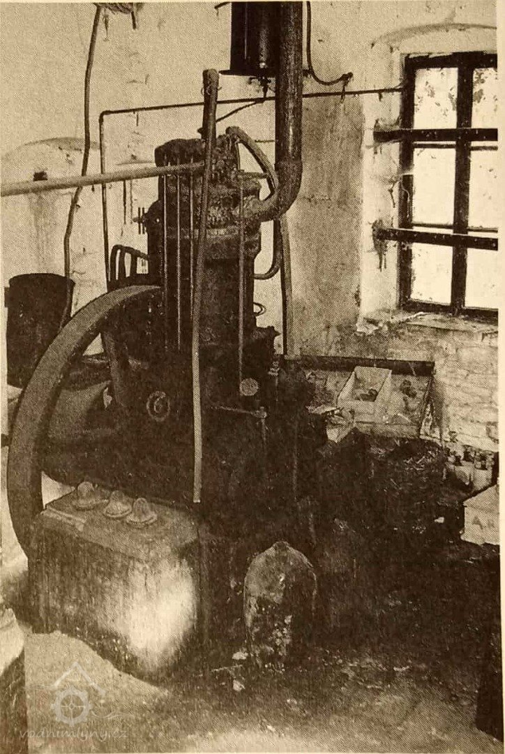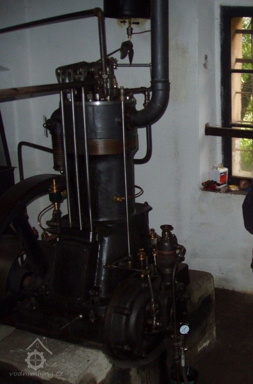 Protože vidnbí kolo nemohlo postačovat k pohonu několika z potřebného množství strojů při mlecím procesu najednou, bylo doplněno pomocným pohonem - spalovacím motorem firmy Laurin & Klement.
