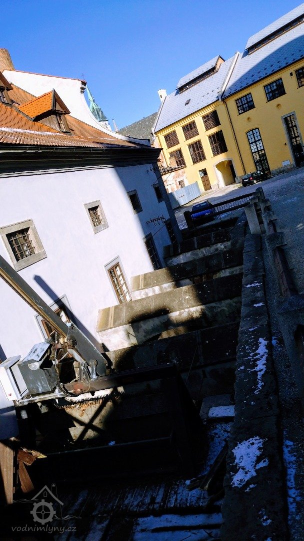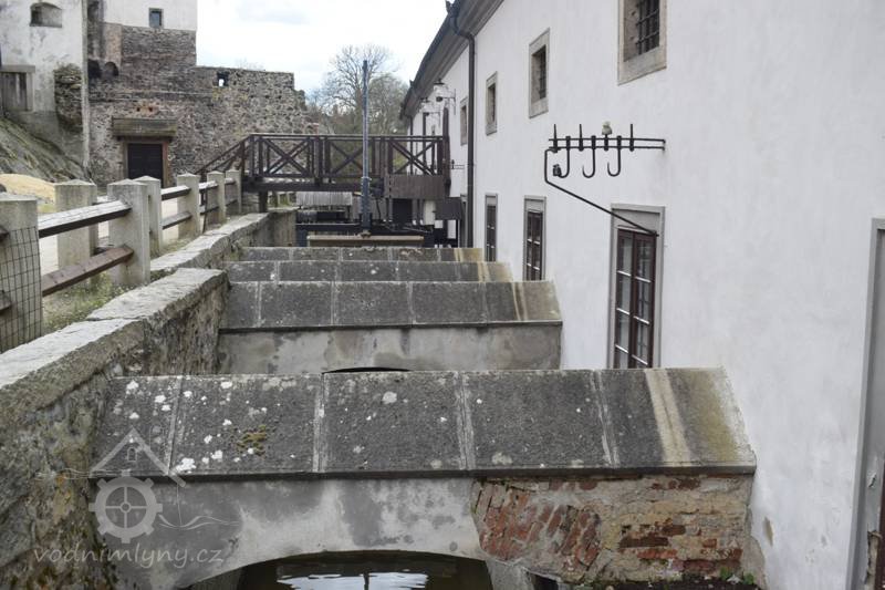 6.12.1845: vodní splav, sestavený z fošen, byl dlouhý 31,9 m, široký 3,16 m a hluboký 95 cm. Stál na vlastních nosných trámech. Z náhonu šla voda přes stavidla po žlabech z drážkovaných prken na pět zadních mlýnských kol a na kolo stoupy.