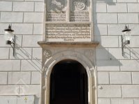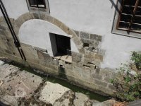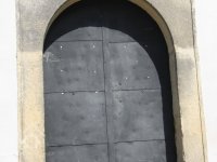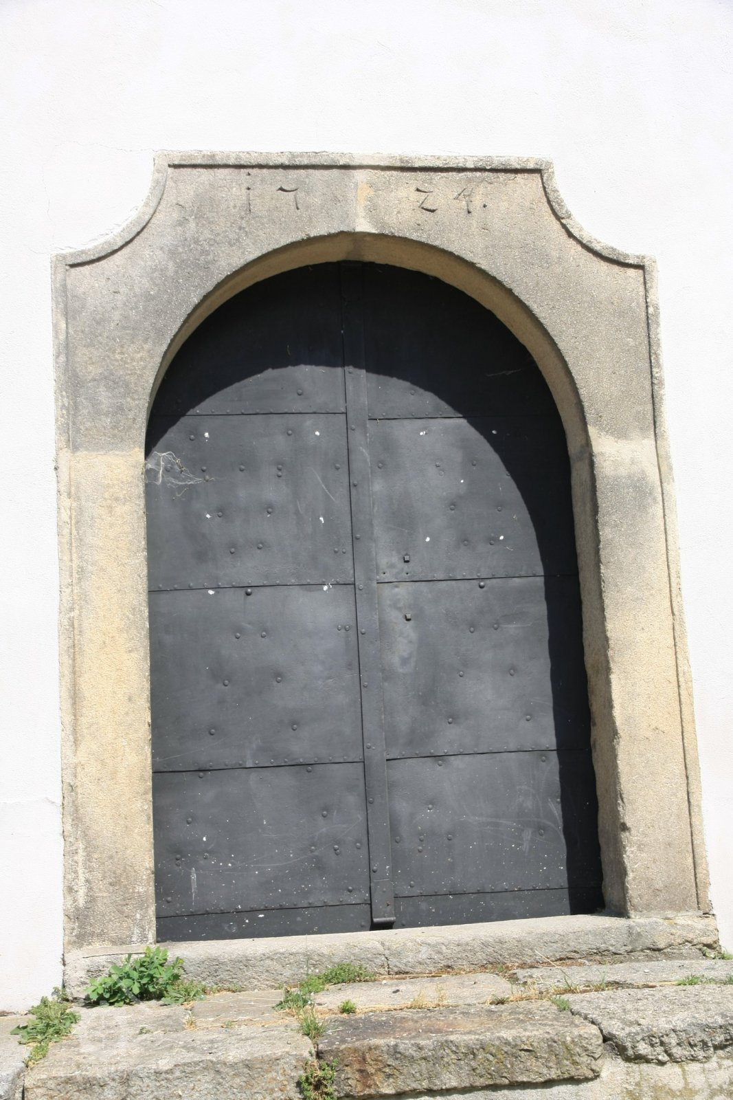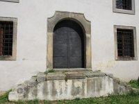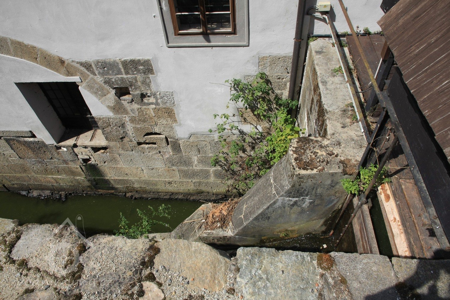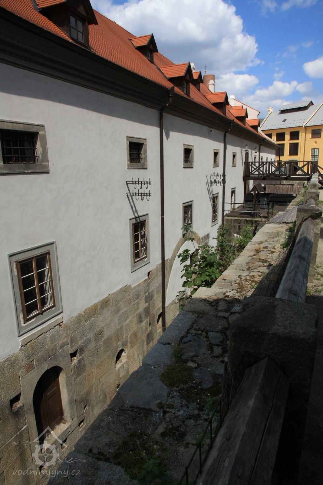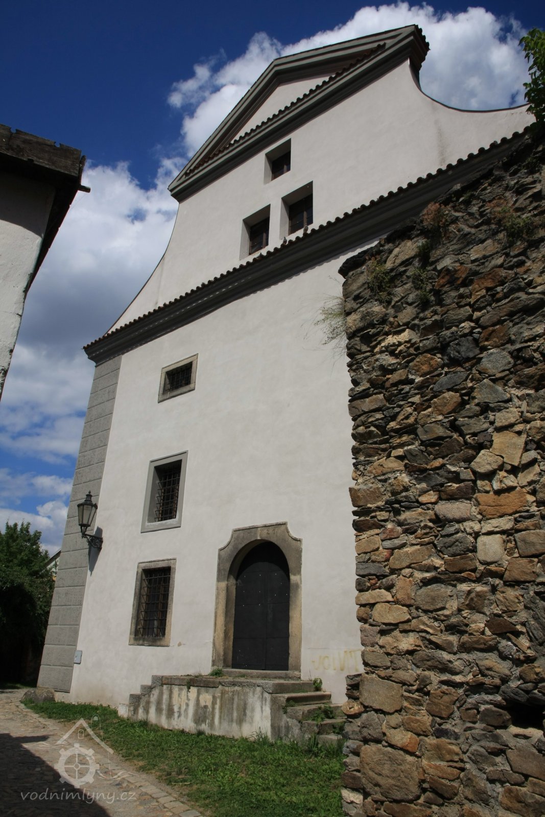 Mlýn o čtrnácti složeních. V průčelí kamenné obložení. Vnitřní obložení ozdobeno pětilistými růžemi ve vyhloubeném žlábku. Stejně profilovaná vrata i vně, ale na hraně se šroubovitým prutem. Nad obložením vodorovná římsa, pod níž v rozích po stranách archivolty hradecká a rožmberská růže. Nad římsou jsou žulové desky, na nichž pod římsou vytesané znaky Jáchyma a Anny z Rožmberka.
