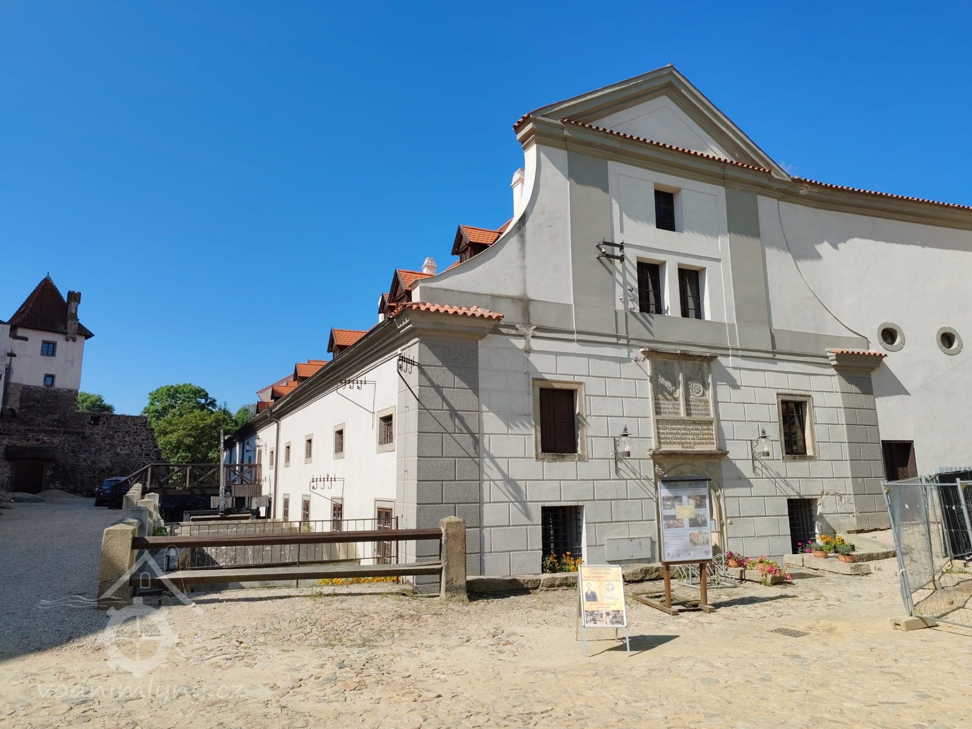 Podél objektu po jižní straně situován zčásti otevřený náhon, který měl v minulosti vůči zámku i obranný charakter vodního příkopu, a směřoval z rybníka Vajgaru do řeky Nežárky.