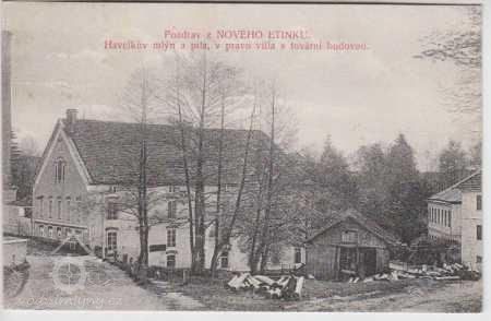 Historie komínu pod mostem přes řeku Kamenici sahá do roku 1860 kdy vznikla v tehdejším Novém Etinku první česká továrna na houně, haleny a koňské přikrývky. Jepičí život této fabriky ukončila nezaplacená státní zakázka pro Rakousko-Uherskou armádu. V roce 1866 po prohrané bitvě u Hradce Králového se monarchie dostala do velký ekonomických problémů. Továrník pan Svobodný po získání velké zakázky si vzal úvěr, ale po odmítnutí státu vyrobené zboží převzít a hlavně ho zaplatit se tato malá fabrika po roce 1866 dostala do krachu. Čapí hnízdo v koruně komínu se tak může pyšnit 140-letou tradicí.