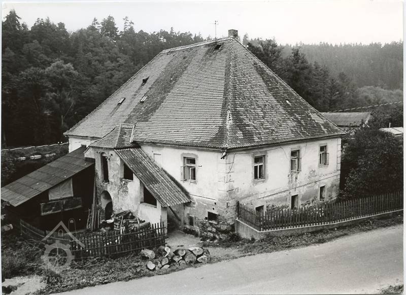 Stávající budova vodního mlýna s náhonem, mosty a fragmenty hospodářských staveb je patrně středověkého původu, přestavěná barokně a klasicistně před polovinou 19. století. Jednopatrová budova obdélného půdorysu je zastřešena strmou valbovou střechou.