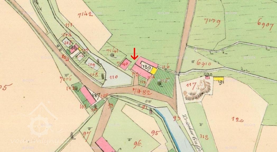 PopisV r. 1930 zde byla 2 kola na svrchní vodu, průtok 0,153 m3/s, spád obou 4,6 m, celk. výkon 6,1 k.