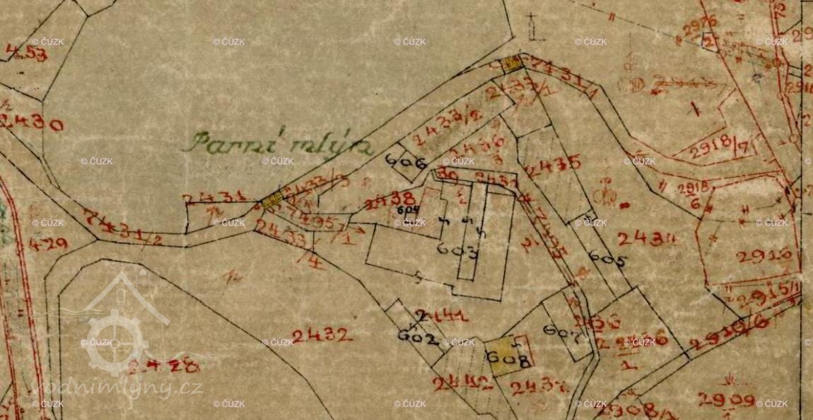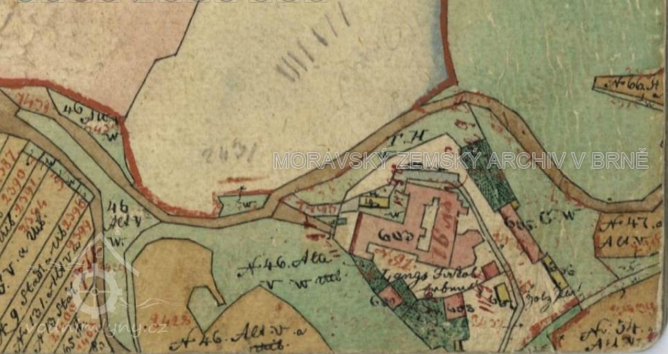 Pravděpodobně se jedná o mlýn uvedený v Seznamu vodních děl pod č. p. 91, majitel Podstatzský - Lichtenstein (RR).