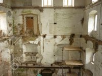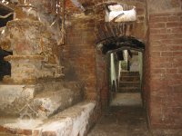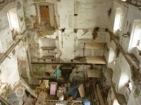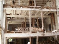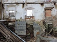 stav v roce 2011 - V areálu se nacházejí zbytky cenného strojního zařízení jako je část transmisí, korečkové výtahy k přepravě meliva či dřevěné násypky.